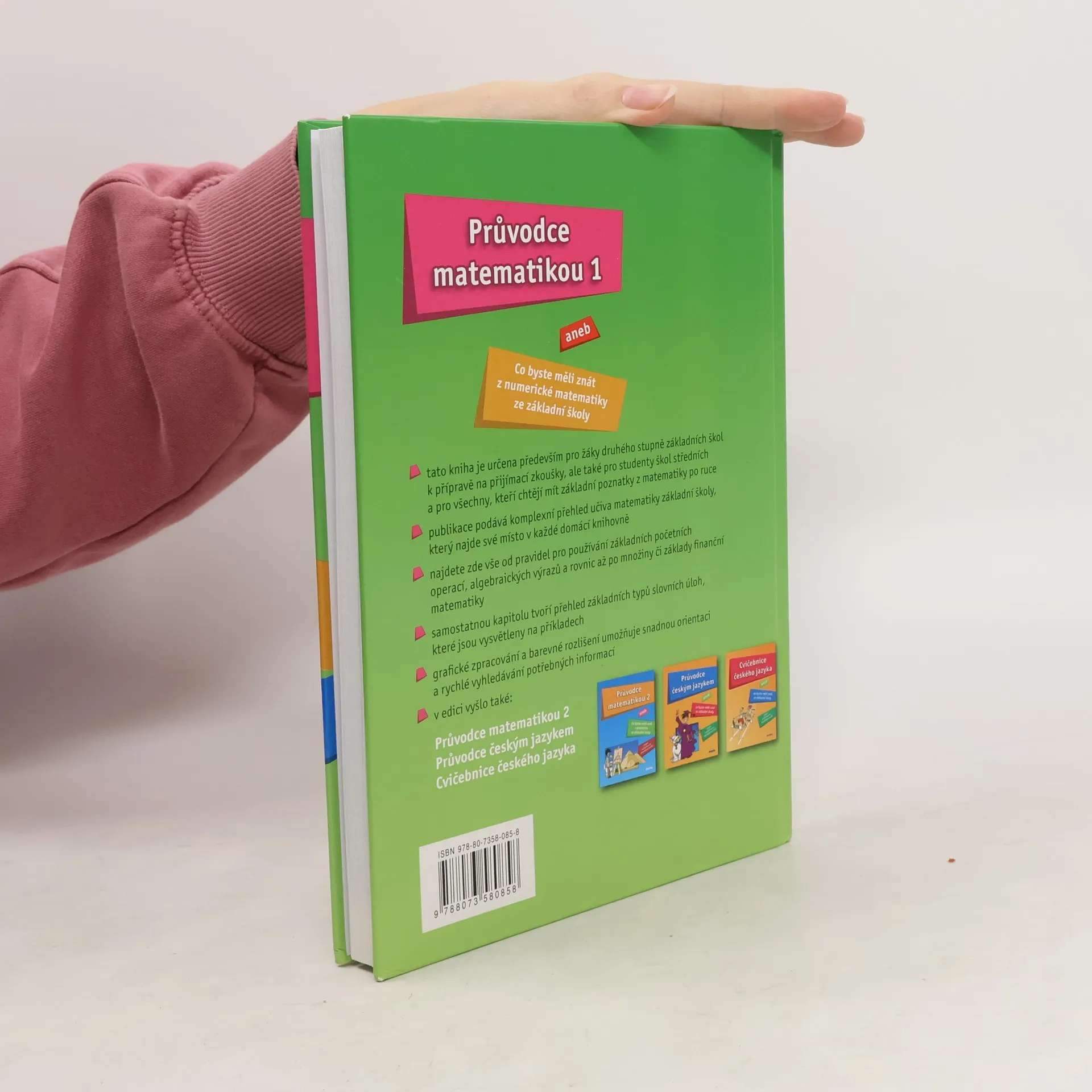 Průvodce matematikou aneb co byste měli znát z numerické matematiky ze základní školy. Tato kniha je určena především pro žáky druhého stupně základních škol k připravě na přijímací zkoušky, ale také pro studenty škol středních a pro všechny, kteří chtějí mít základní poznatky z matematiky po ruce. Publikace podává komplexní přehled učiva matematiky základní školy, který najde své místo v každé domácí knihovně. Najdete zde vše od pravidel pro používání základních početních operací, algebraických výrazů a rovnic až po množiny či základy finanční matematiky. Samostatnou kapitolu tvoří přehled základních typů slovních úloh, které jsou vysvětleny na příkladech. Grafické zpracování a barevné rozlišení umožňuje snadnou orientaci a rychlé vyhledávání potřebných informací. Navazujícím dílem je Průvodce matematikou 2 Knihu ilustroval Josef Fraško a grafické úpravy provedl Petr Přenosil.