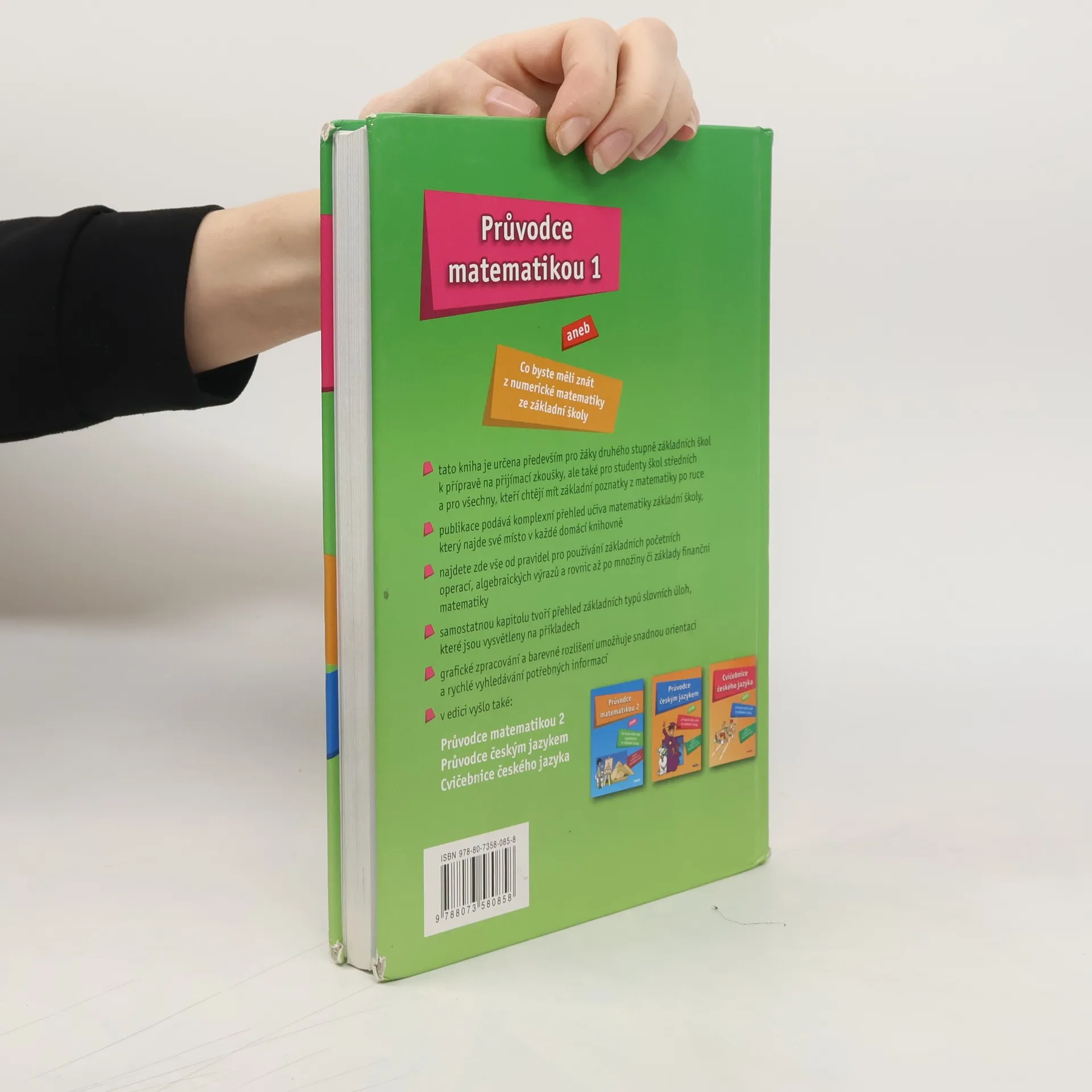 Průvodce matematikou aneb co byste měli znát z numerické matematiky ze základní školy. Tato kniha je určena především pro žáky druhého stupně základních škol k připravě na přijímací zkoušky, ale také pro studenty škol středních a pro všechny, kteří chtějí mít základní poznatky z matematiky po ruce. Publikace podává komplexní přehled učiva matematiky základní školy, který najde své místo v každé domácí knihovně. Najdete zde vše od pravidel pro používání základních početních operací, algebraických výrazů a rovnic až po množiny či základy finanční matematiky. Samostatnou kapitolu tvoří přehled základních typů slovních úloh, které jsou vysvětleny na příkladech. Grafické zpracování a barevné rozlišení umožňuje snadnou orientaci a rychlé vyhledávání potřebných informací. Navazujícím dílem je Průvodce matematikou 2 Knihu ilustroval Josef Fraško a grafické úpravy provedl Petr Přenosil.