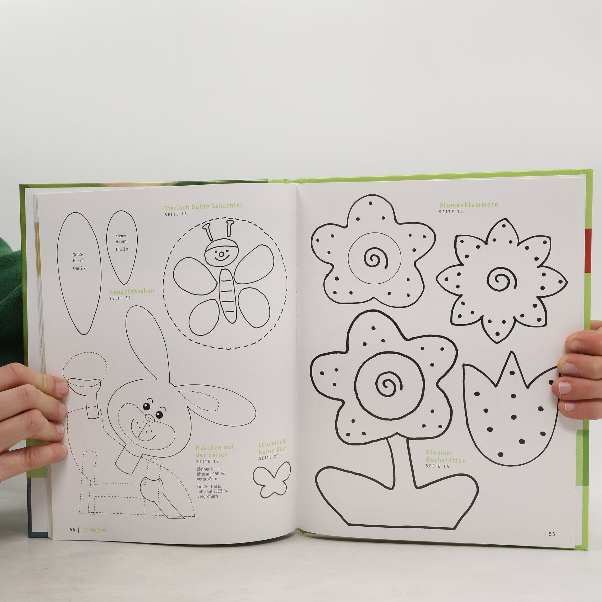 Schmetterlinge in einfacher Falttechnik, Schachteln mit Pappmaché oder bunten Steinen beklebt, Bienchen in der Hexentreppenfaltung und andere Frühlingsbasteleien.