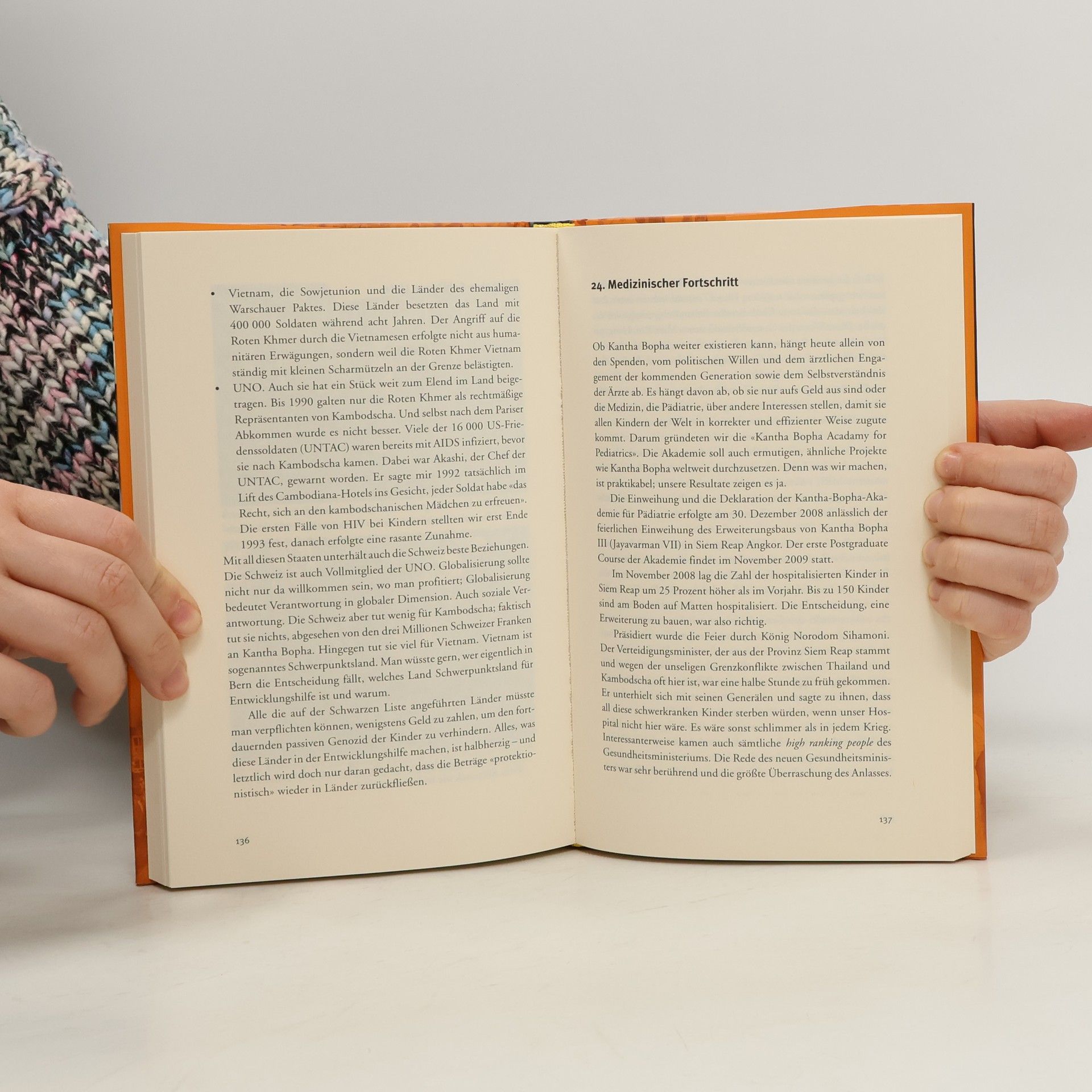Pol Pot trieb in Kambodscha über Jahre ein mörderisches Spiel. Als sein Regime 1991 endlich entmachtet wurde, war das Land zerstört und seine Bevölkerung weitgehend vernichtet. Es gab keine Ärzte mehr, die die Überlebenden hätten ausreichend medizinisch versorgen könnten. Der erfolgreiche Kinderarzt Beat Richner erkannte den Missstand. Er liess Zürich und seine Karriere hinter sich, um in Phnom Penh ein Kinderspital zu errichten. Dem Spital folgten weitere, und Richners Vision entwickelte sich zu einem der eindrücklichsten humanitären Projekte der Welt. Er sorgt mit seinen 2100 kambodschanischen Mitarbeitenden in fünf Spitälern dafür, dass jährlich 90 000 Kindern das Leben gerettet werden kann. Seit 18 Jahren kämpft der Arzt unentwegt für eine gute medizinische Versorgung der jüngsten Kambodschaner. In seinem neuen Buch berichtet er aus dem Spitalalltag und zeigt sowohl Probleme als auch Chancen auf, die sich für eine gerechtere Medizin in Entwicklungsländern ergeben. Der Ertrag aus dem Verkauf des Buches geht an die Kantha-Bopha-Stiftung zugunsten der Kinderspitäler.