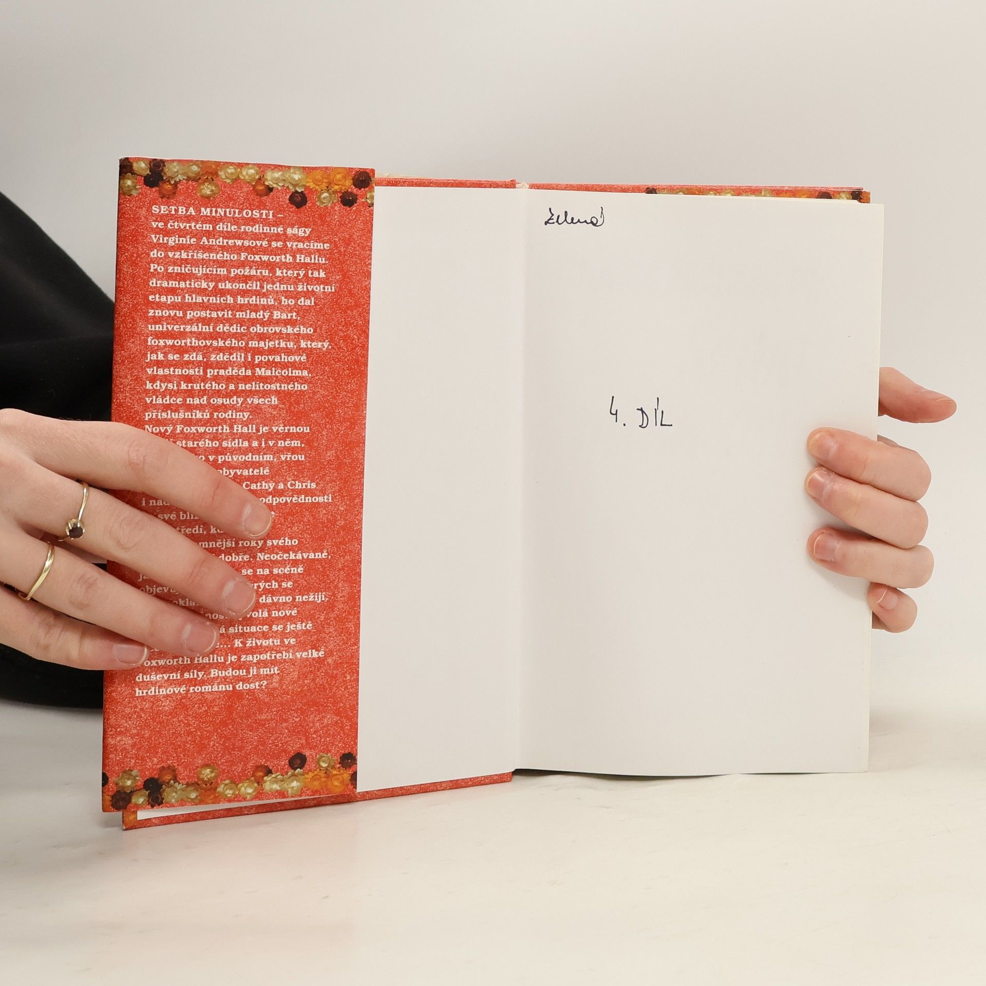 Pentalogie: Květy z půdy, Lístky ve větru, Vykoupení ohněm, Setba minulosti, Zahrada stínů Ve čtvrtém díle rodinné ságy se vracíme do vzkříšeného Foxworth Hallu. Po zničujícím požáru, který tak dramaticky ukončil jednu životní etapu hlavních hrdinů, ho dal znovu postavit mladý Bart, univerzální dědic obrovského foxworthovského majetku, který, jak se zdá, zdědil i povahové vlastnosti praděda Malcolma, kdysi nelítostného a krutého vládce nad osudy všech příslušníků rodiny.