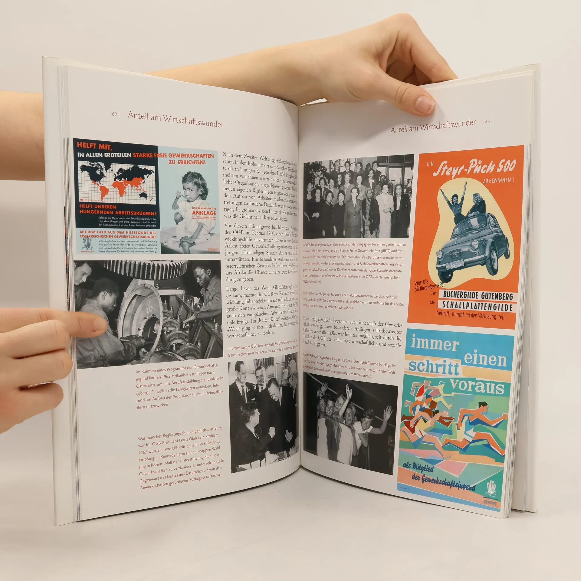 Die Geschichte der Gewerkschaftsbewegung ist auch immer ein Stück Geschichte von einzelnen Menschen. Und ganz besonders von jenen Menschen, die jahrelang den gewerkschaftlichen Gedanken mittragen und den ÖGB als treue Mitglieder unterstützen. All diesen Menschen ist dieser Bildband über die Geschichte der Gewerkschaftsbewegung gewidmet. Das Buch wird über die jeweilige Gewerkschaft an Jubilare verteilt. Es ist ein Buch, das daran erinnert, dass Vieles, was uns heute selbstverständlich erscheint, erst über Jahre hart erkämpft werden musste. Die Entdeckung der Solidarität begann in der frühen Neuzeit bei den Bergarbeitern. Kollektivvereinbarungen und politische Rechte für Arbeiter konnten erstmals in der Revolution 1848 erstritten werden. Die junge Gewerkschaftsbewegung kämpfte für ein besseres Leben in der Habsburger- monarchie und konnte in der kurzzeitigen Koalitionsregierung nach dem Ersten Weltkrieg sozialpolitische Meilensteine setzen. Im Widerstand gegen Diktatur und Faschismus spielte die Gewerkschaftsbewegung eine führende Rolle. Nach 1945 wurde sie Mitgestalterin einer neuen Epoche. Der Bildband ist wie eine Zeitung gestaltet. Jede Seite kann für sich alleine gelesen werden. Neben dem fixen Kernteil (der für alle Ausgaben der Gewerkschaften gleich ist) wurden Mutationen für die Gewerkschaften verwirklicht.