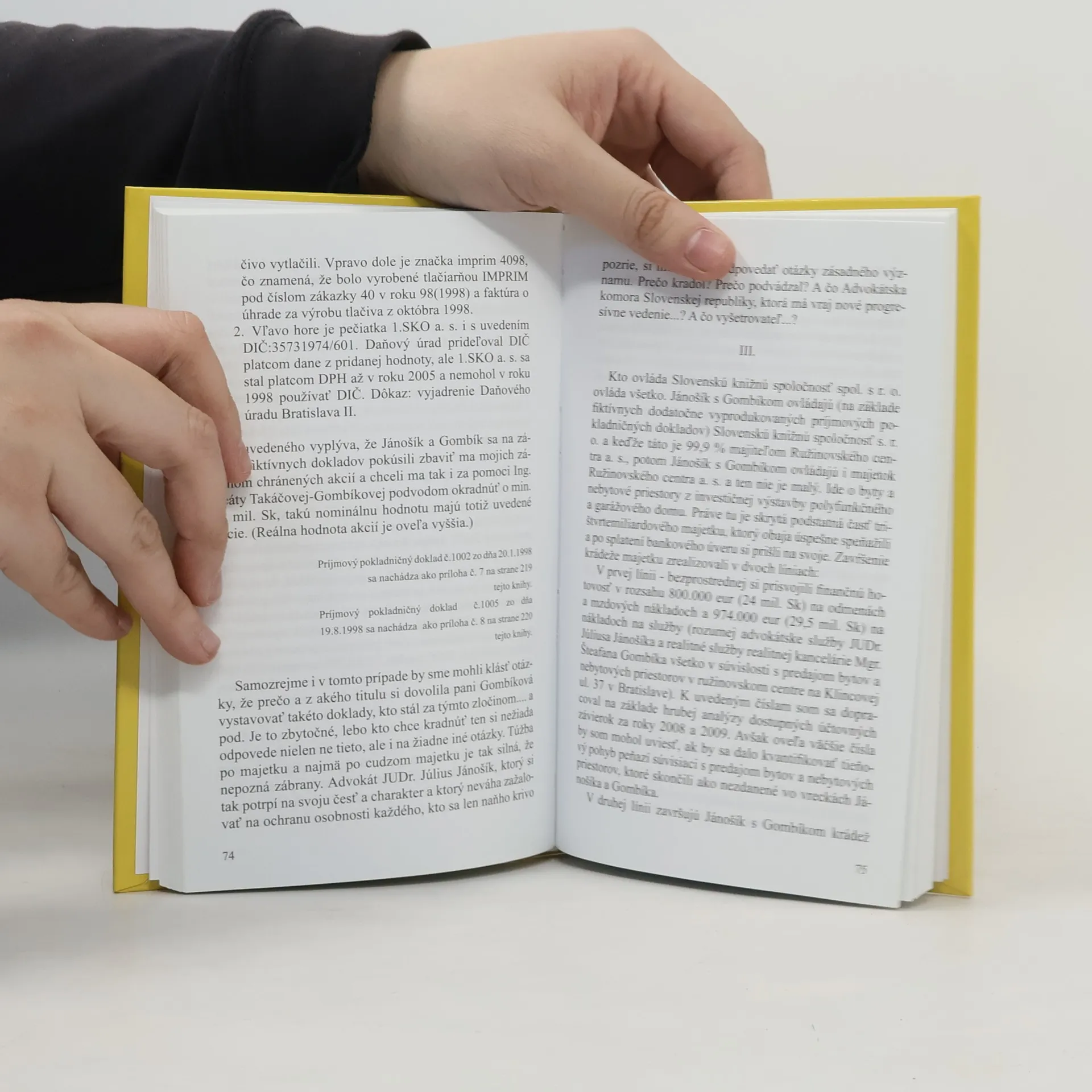 Aktuálny príbeh autora - podnikateľa, ktorého dvaja eštebáci pripravili o majetok v hodnote 80 mil. Sk, čo je cca 2. 655. 514 eur prostredníctvom vnútených právnych zmlúv vyhotovených jedným z nich - známym bratislavským advokátom. Kniha sa môže stať klasickou učebnicou pre tých právnikov, ktorí sa chcú dostať bez jedinej investovanej koruny, jediného investovaného centa k ovládnutiu trištvrtemiliardového majetku v korunách(23,5 mil. eur) prostredníctvom vstupu do zabehnutej spoločnosti. Učebnicový je i spôsob pretavenia ovládnutého majetku do osobného vlastníctva. Kniha je súčasne svedectvom o zlyhaní orgánov činných v trestnom konaní, polície, prokuratúry a súdnictva. Príbeh je autentický, reálny, obsahuje skutočné súvislosti, skutočné mená osôb , skutočné názvy podnikateľských subjektov, úradov, inštitúcií, skutočné názvy a obsah zmlúv, dokumentov a prehľadov. Odohráva sa v podmienkach slovenskej reality od roku 1992 a stále beží. Autor touto knihou zachytáva obdobie do novembra 2010.