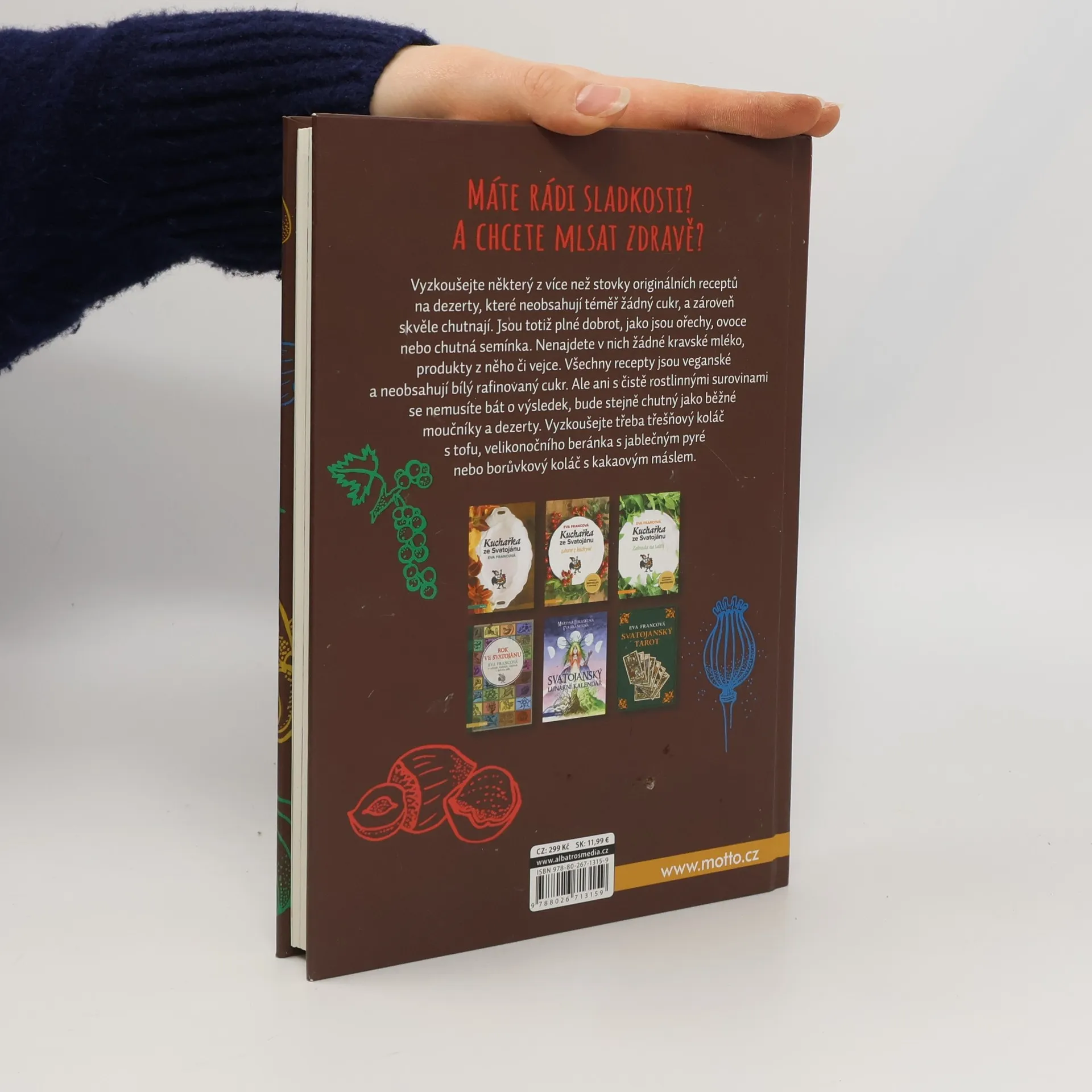 Máte rádi sladkosti? A chcete mlsat zdravě? Vyzkoušejte některý z více než stovky originálních receptů na dezerty, které neobsahují téměř žádný cukr, a zároveň skvěle chutnají. Jsou totiž plné dobrot, jako jsou ořechy, ovoce nebo chutná semínka. Nenajdete v nich však žádné kravské mléko, produkty z něho či vejce. Všechny recepty jsou veganské a neobsahují bílý rafinovaný cukr. Ale ani s čistě rostlinnými surovinami se nemusíte bát o výsledek, bude stejně chutný jako běžné moučníky a dezerty. Vyzkoušejte třeba třešňový koláč s tofu, velikonočního beránka s jablečným pyré nebo borůvkový koláč s kakaovým máslem.