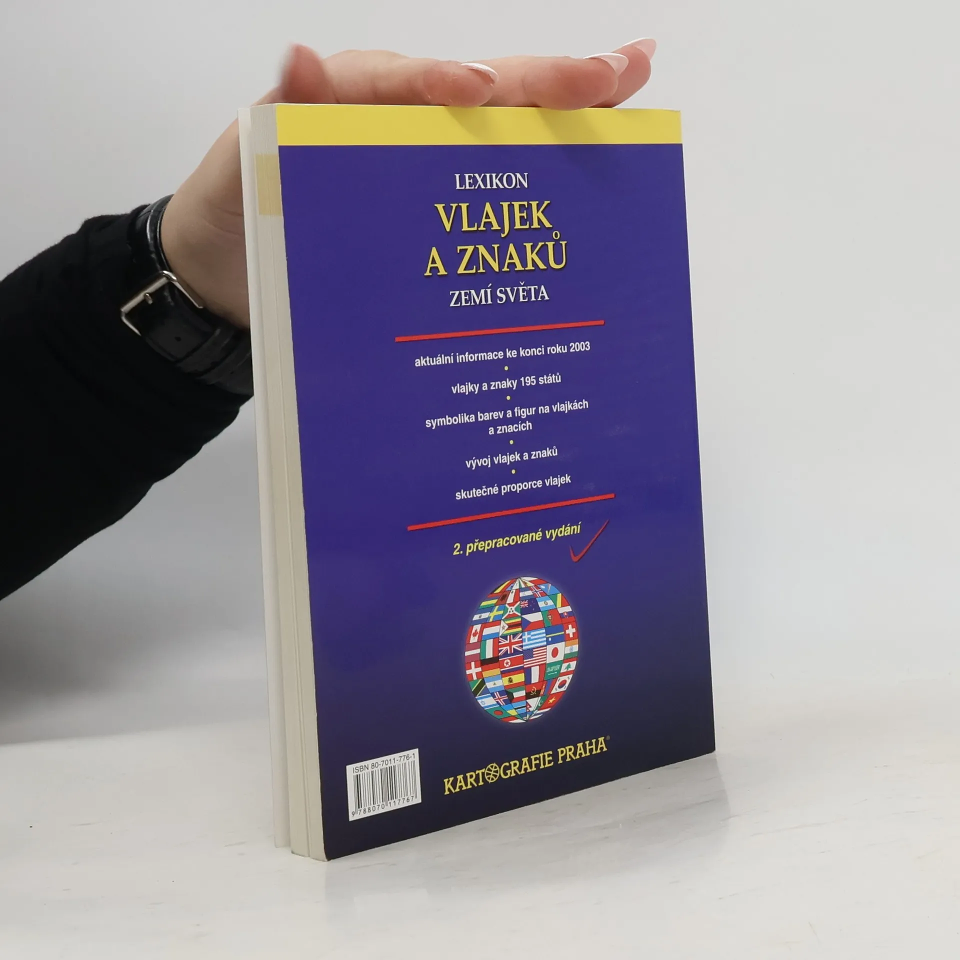 Lexikon vlajek a znaků zemí světa je 2. přepracované vydání - aktuální a obsahuje informace ke konci roku 2003, vlajky a znaky 195 států, stručný historický přehled, politické mapy jednotlivých světadílů, řazeno abecedně, symbolika barev a figur na vlajkách a znacích, vývoj vlajek a znaků, skutečné proporce vlajek.