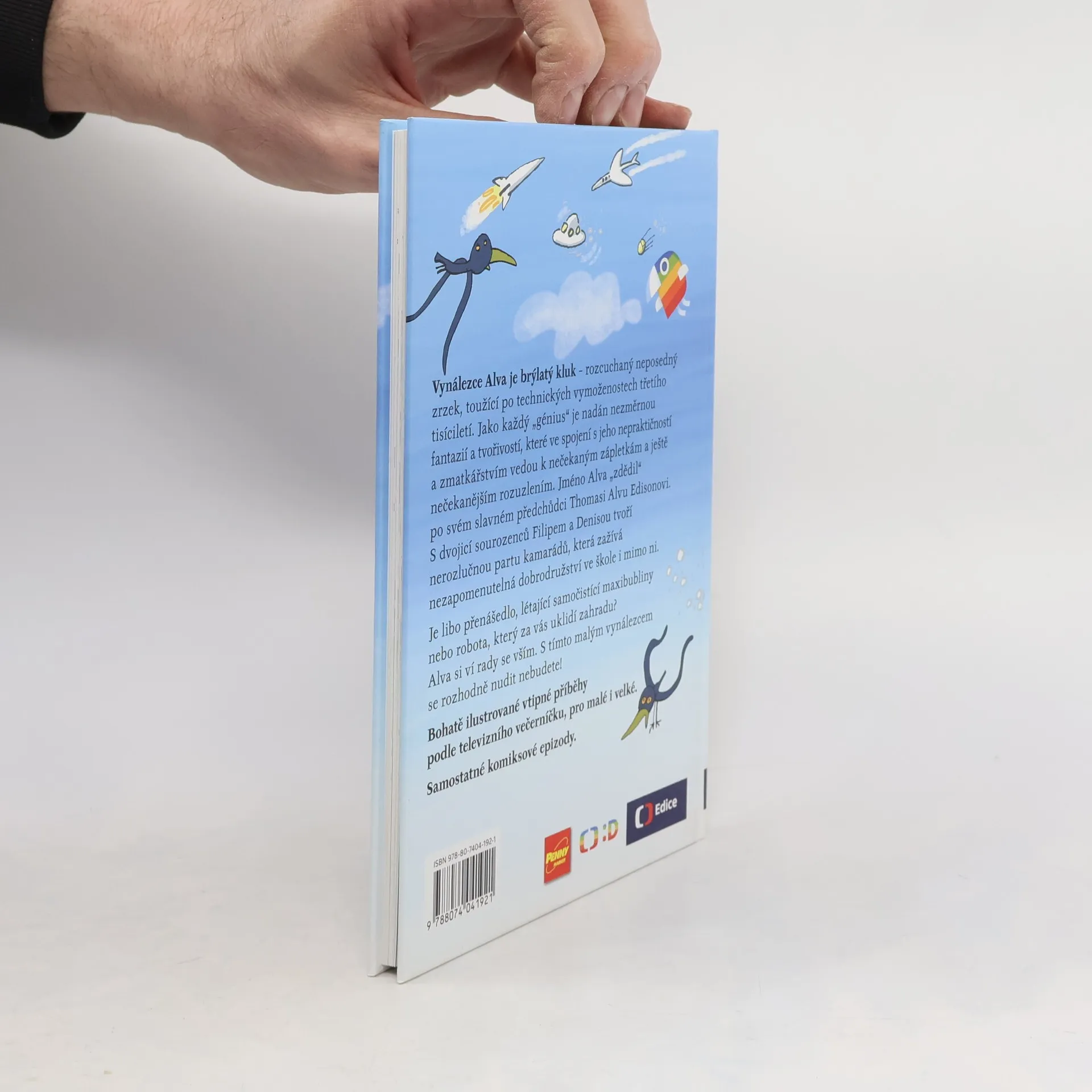 Je libo raketobrusle, přenášedlo, létající samočistící maxibubliny nebo robota, který za vás uklidí zahradu? Alva si ví rady se vším. S tímto vynálezcem se rozhodně nudit nebudete! Vynálezce Alva je brýlatý kluk – rozcuchaný neposedný zrzek, toužící po technických vymoženostech třetího tisíciletí. Jméno Alva „zdědil“ po svém slavném předchůdci T. A. Edisonovi. Jako každý génius je nadán nezměrnou fantazií a tvořivostí, které ve spojení s jeho nepraktičností a zmatkářstvím vedou k nečekaným zápletkám a ještě nečekanějším rozuzlením. S dvojicí sourozenců Filipem a Denisou tvoří nerozlučnou partu kamarádů, která zažívá neuvěřitelná dobrodružství ve škole i mimo ni. Náš příběh začíná první školní den… Bohatě ilustrované vtipné příběhy podle televizního večerníčku, pro malé i velké. 2.,upravené vydání.