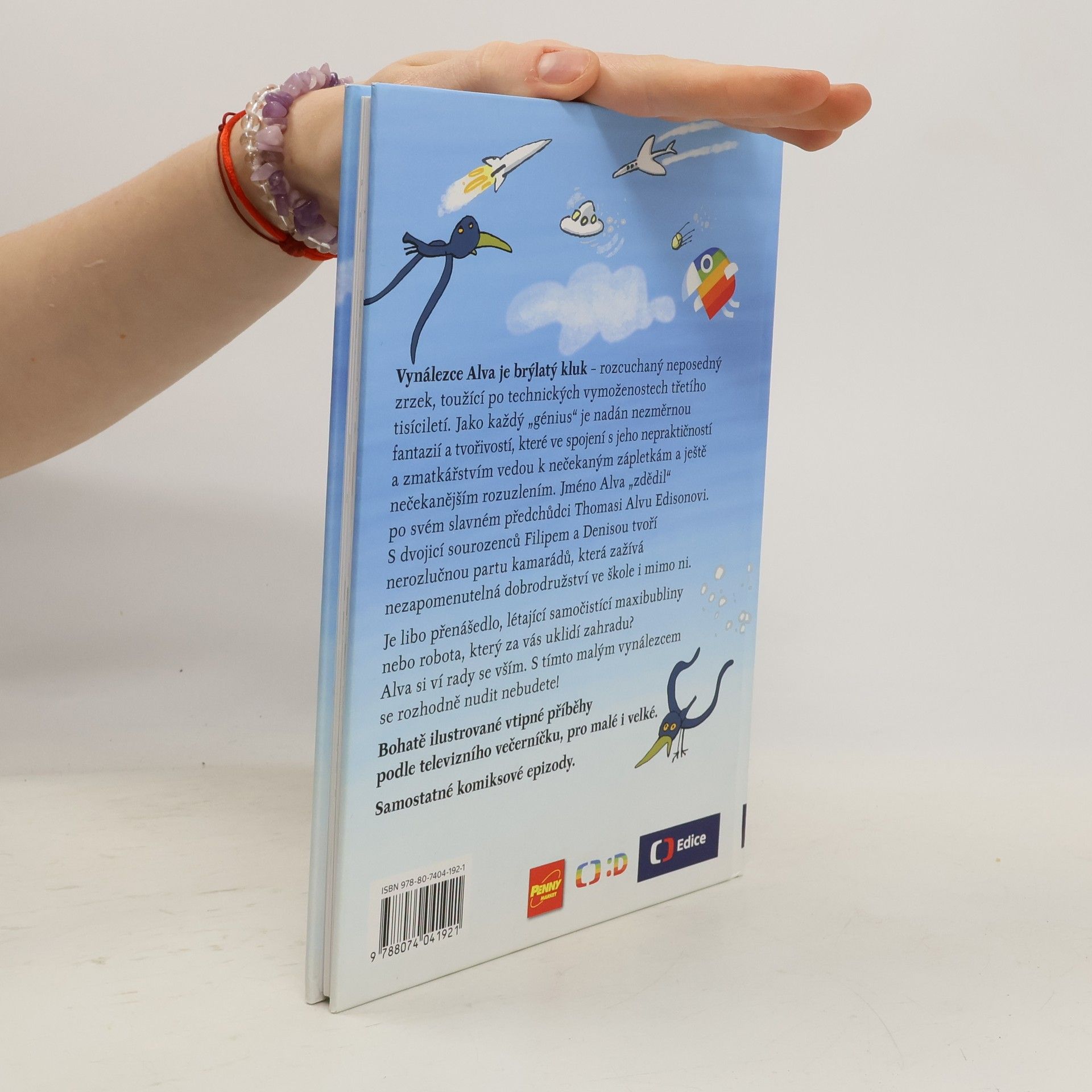 Je libo raketobrusle, přenášedlo, létající samočistící maxibubliny nebo robota, který za vás uklidí zahradu? Alva si ví rady se vším. S tímto vynálezcem se rozhodně nudit nebudete! Vynálezce Alva je brýlatý kluk – rozcuchaný neposedný zrzek, toužící po technických vymoženostech třetího tisíciletí. Jméno Alva „zdědil“ po svém slavném předchůdci T. A. Edisonovi. Jako každý génius je nadán nezměrnou fantazií a tvořivostí, které ve spojení s jeho nepraktičností a zmatkářstvím vedou k nečekaným zápletkám a ještě nečekanějším rozuzlením. S dvojicí sourozenců Filipem a Denisou tvoří nerozlučnou partu kamarádů, která zažívá neuvěřitelná dobrodružství ve škole i mimo ni. Náš příběh začíná první školní den… Bohatě ilustrované vtipné příběhy podle televizního večerníčku, pro malé i velké. 2.,upravené vydání.