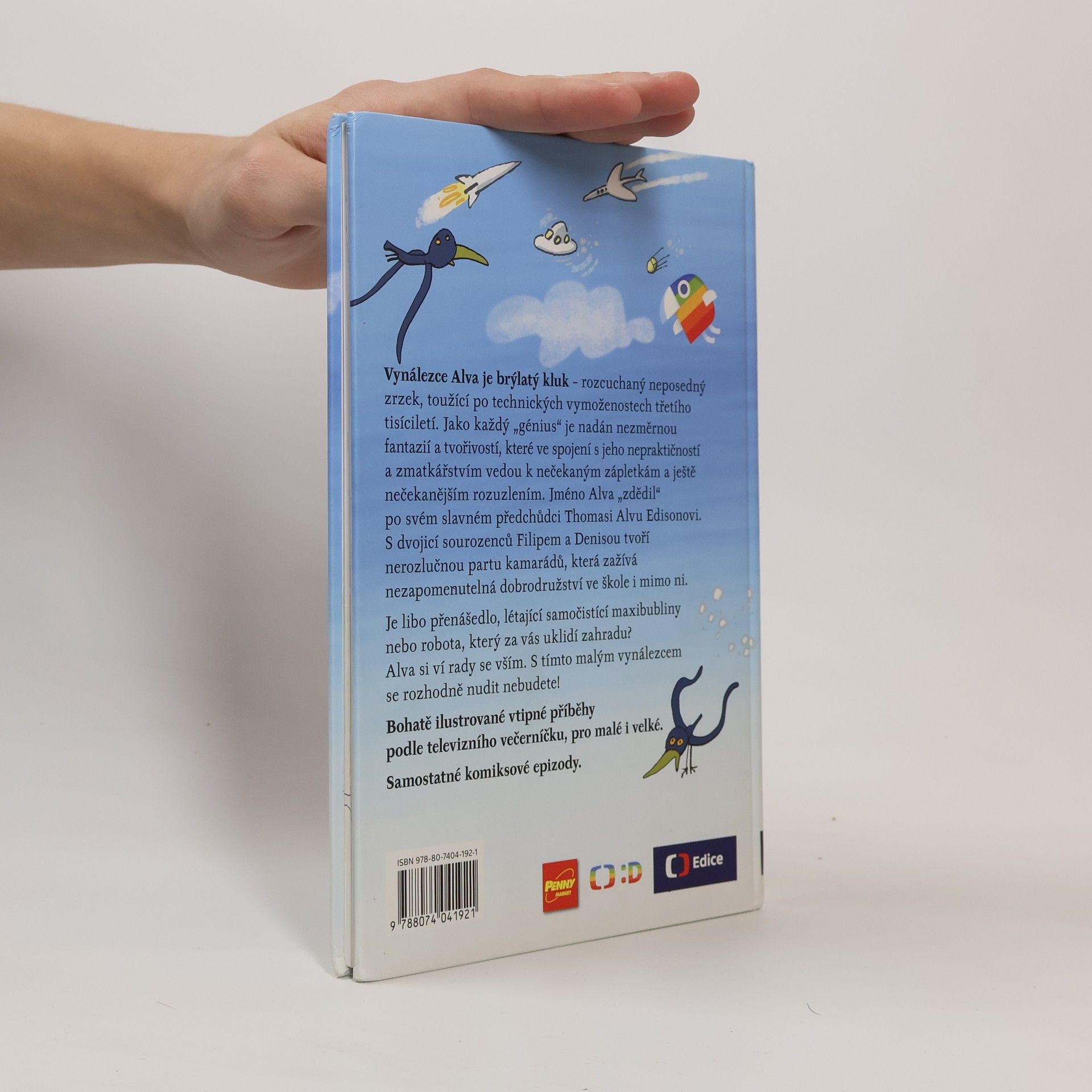 Je libo raketobrusle, přenášedlo, létající samočistící maxibubliny nebo robota, který za vás uklidí zahradu? Alva si ví rady se vším. S tímto vynálezcem se rozhodně nudit nebudete! Vynálezce Alva je brýlatý kluk – rozcuchaný neposedný zrzek, toužící po technických vymoženostech třetího tisíciletí. Jméno Alva „zdědil“ po svém slavném předchůdci T. A. Edisonovi. Jako každý génius je nadán nezměrnou fantazií a tvořivostí, které ve spojení s jeho nepraktičností a zmatkářstvím vedou k nečekaným zápletkám a ještě nečekanějším rozuzlením. S dvojicí sourozenců Filipem a Denisou tvoří nerozlučnou partu kamarádů, která zažívá neuvěřitelná dobrodružství ve škole i mimo ni. Náš příběh začíná první školní den… Bohatě ilustrované vtipné příběhy podle televizního večerníčku, pro malé i velké. 2.,upravené vydání.