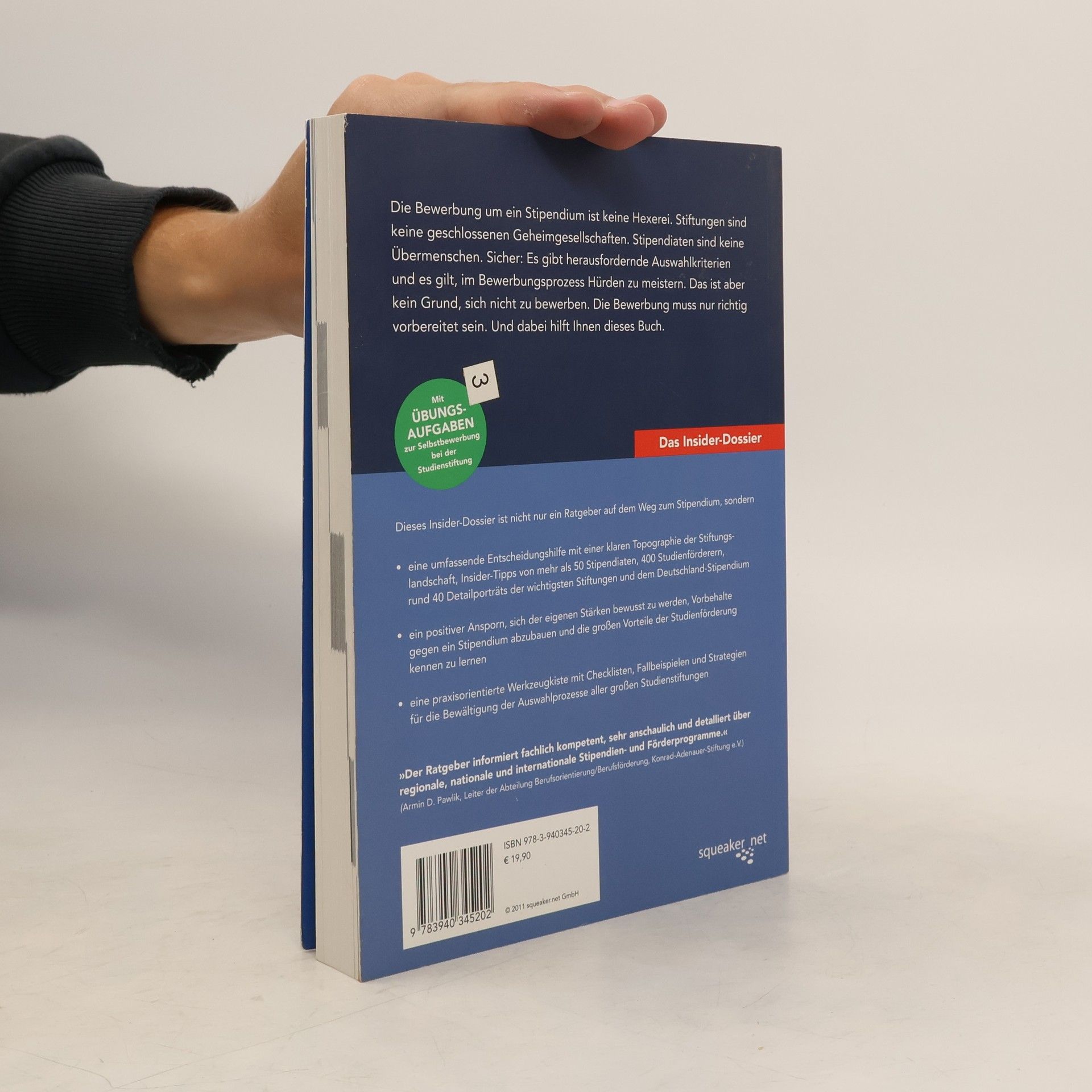 Die Bewerbung um ein Stipendium ist keine Hexerei. Stiftungen sind keine geschlossenen Geheimgesellschaften. Stipendiaten sind keine Übermenschen. Sicher: Es gibt herausfordernde Auswahlkriterien und es gilt, im Bewerbungsprozess Hürden zu meistern. Das ist aber kein Grund, sich nicht zu bewerben. Die Bewerbung muss nur richtig vorbereitet sein. Und dabei hilft Ihnen dieses Buch. Dieses Insider-Dossier ist nicht nur ein Ratgeber auf dem Weg zum Stipendium, sondern eine umfassende Entscheidungshilfe mit einer klaren Topographie der Stiftungslandschaft, Insider-Tipps von mehr als 50 Stipendiaten, 400 Studienförderern, rund 40 Detailporträts der wichtigsten Stiftungen und dem Deutschland-Stipendium. Es bietet einen Ansporn, sich der eigenen Stärken bewusst zu werden, Vorbehalte gegen ein Stipendium abzubauen und die großen Vorteile der Studienförderung kennen zu lernen sowie eine praxisorientierte Werkzeugkiste mit Checklisten, Fallbeispielen und Strategien für die Bewältigung der Auswahlprozesse aller großen Studienstiftungen „Der Ratgeber informiert fachlich kompetent, sehr anschaulich und detailliert über regionale, nationale und internationale Stipendien- und Förderprogramme.“