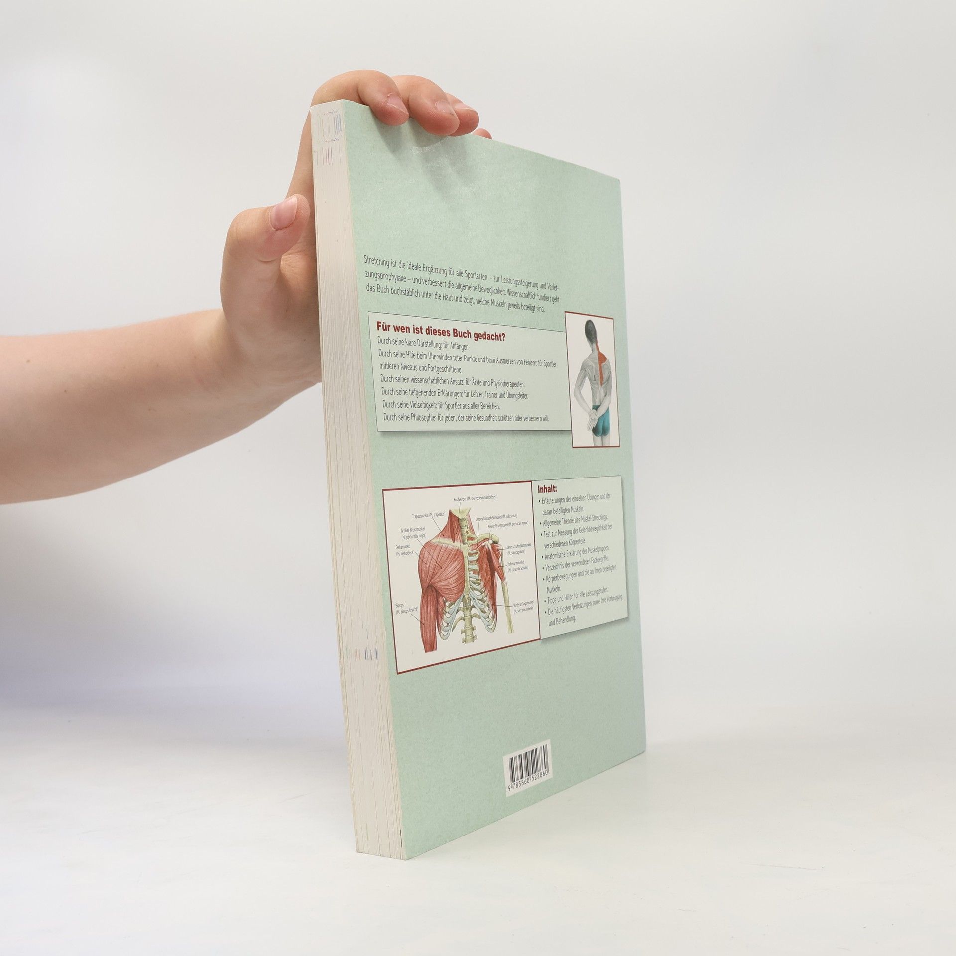 Stretching ist die ideale Ergänzung für alle Sportarten zur Leistungssteigerung und Verletzungsprophylaxe - und verbessert die allgemeine Befindlichkeit. Wissenschaftlich fundiert geht das Buch buchstäblich unter die Haut und zeigt, welche Muskeln jeweils beteiligt sind. Das Buch ist durch seine klar strukturierte und übersichtliche Darstellung sowohl für Anfänger geeignet, als auch durch seinen wissenschaftlichen Ansatz und die tiefgehenden Erklärungen für Sportler, Ärzte und Physiotherapeuten, sowie Lehrer, Trainer und Übungsleiter. 91 einzelne Übungen mit den daran beteiligen Muskeln werden ausführlich erläutert. Eine Zeichnung veranschaulicht die Übung und zeigt die beteiligten Muskelgruppen mit ihren korrekten Fachbegriffen. Ein kurzer prägnanter Text erklärt die Übung, beschreibt die Ausführung und warnt vor potentiellen Fehlern.