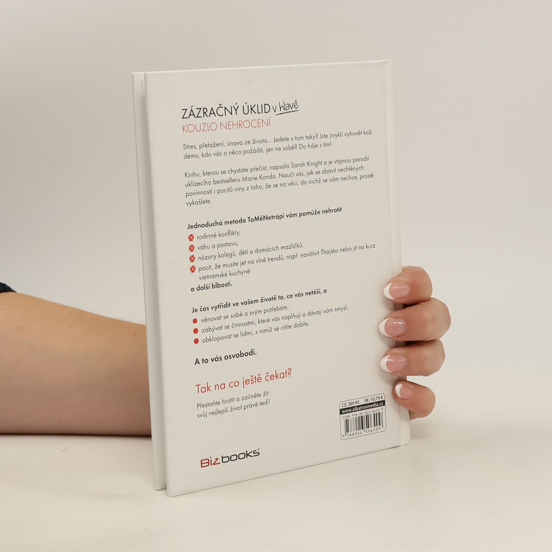 Stres, přetažení, únava ze života… Jedete v tom taky? Jste zvyklí vyhovět každému, kdo vás o něco požádá, jen ne sobě? Jste zvyklí vyhovět každému, kdo vás o něco požádá, jen ne sobě? Do háje s tím! Knihu, kterou se chystáte přečíst, napsala Sarah Knight a je vtipnou parodií uklízecího bestselleru Marie Kondo. Naučí vás, jak se zbavit nechtěných povinností i pocitů viny z toho, že se na věci, do nichž se vám nechce, prostě vykašlete. Jednoduchá metoda ToMěNetrápí vám pomůže nehrotit: rodinné konflikty; váhu a postavu; názory kolegů, dětí a domácích mazlíčků; dovolené do zemí, které jsou právě v kurzu, ale kam třeba ani nechcete, a další blbosti. Je čas vytřídit v životě, co vás netěší a věnovat se sobě a svým potřebám; zabývat se činnostmi, které vás naplňují a dávají vám smysl; obklopovat se lidmi, s nimiž se cítíte dobře. A to vás osvobodí. Tak na co ještě čekat?