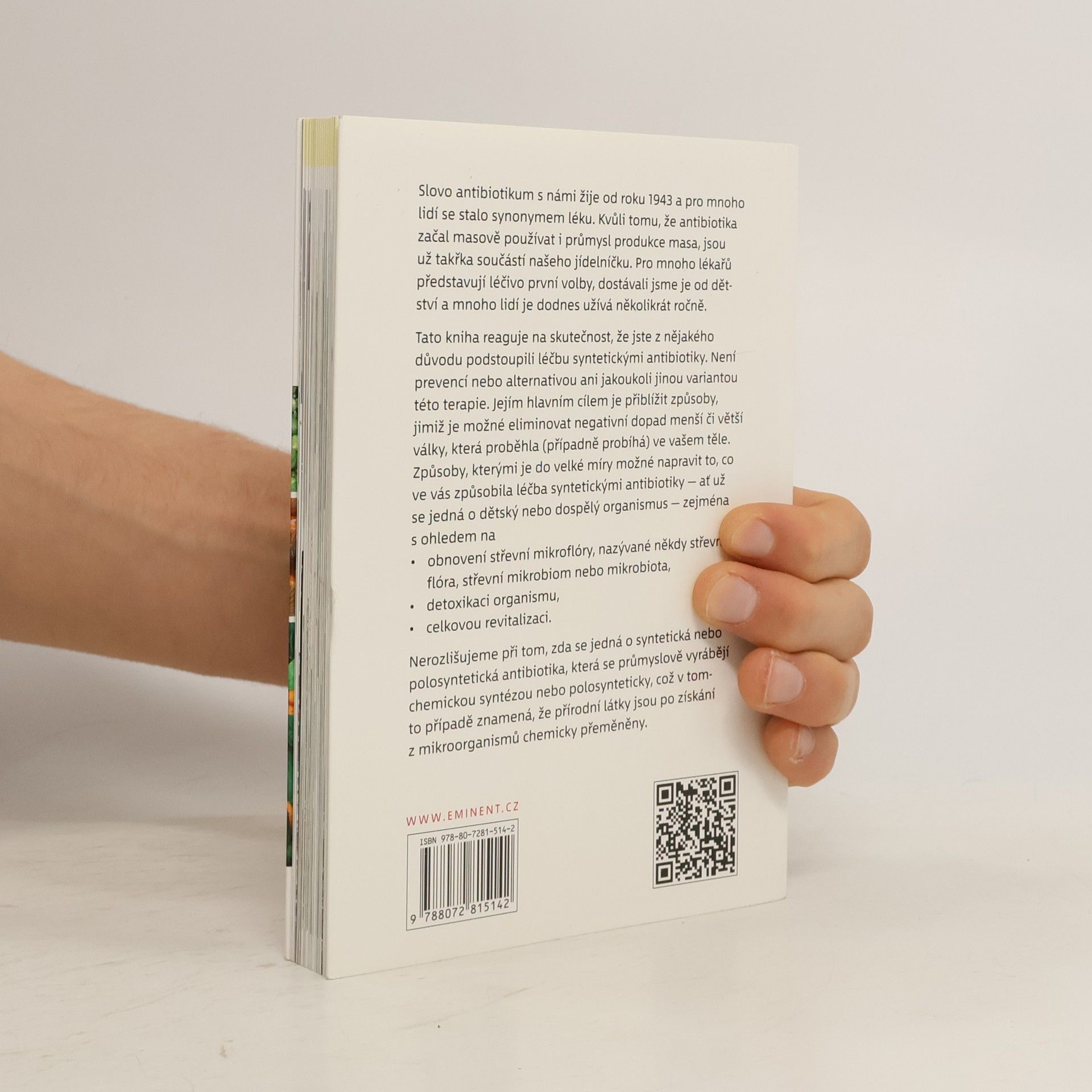Slovo antibiotikum s námi žije od roku 1943 a pro mnoho lidí se stalo synonymem léku. Díky tomu, že je masově začal používat i průmysl produkce masa, stala se už takřka součástí potravního jídelníčku. Z antibiotik se pro mnoho lékařů stalo léčivo první volby, dostávali jsme je od dětství a mnoho lidí je dodnes užívá několikrát ročně. Tato kniha už ovšem reaguje na skutečnost, že jste z nějakého důvodu podstoupili léčbu syntetickými antibiotiky. Není prevencí nebo alternativou, anebo jakoukoli jinou variantou této terapie. Jejím hlavním cílem je přiblížit způsoby, kterými je možné eliminovat negativní dopad menší či větší války, která proběhla (případně probíhá) ve vašem těle. Kterými je do velké míry možné napravit to, co ve vás způsobila léčba syntetickými antibiotiky - ať už se jedná o dětský nebo dospělý organismus - zejména s ohledem na - obnovení střevní mikroflóry, nazývané někdy střevní flóra, střevní mikrobiom nebo mikrobiota - detoxikaci organismu - jeho celkovou revitalizaci Nerozlišujeme přitom, jestli se jedná o syntetická nebo polosyntetická antibiotika, která se průmyslově vyrábějí chemickou syntézou nebo polosynteticky, což v tomto případě znamená, že přírodní látky jsou po získání z mikroorganismů chemicky přeměněny.