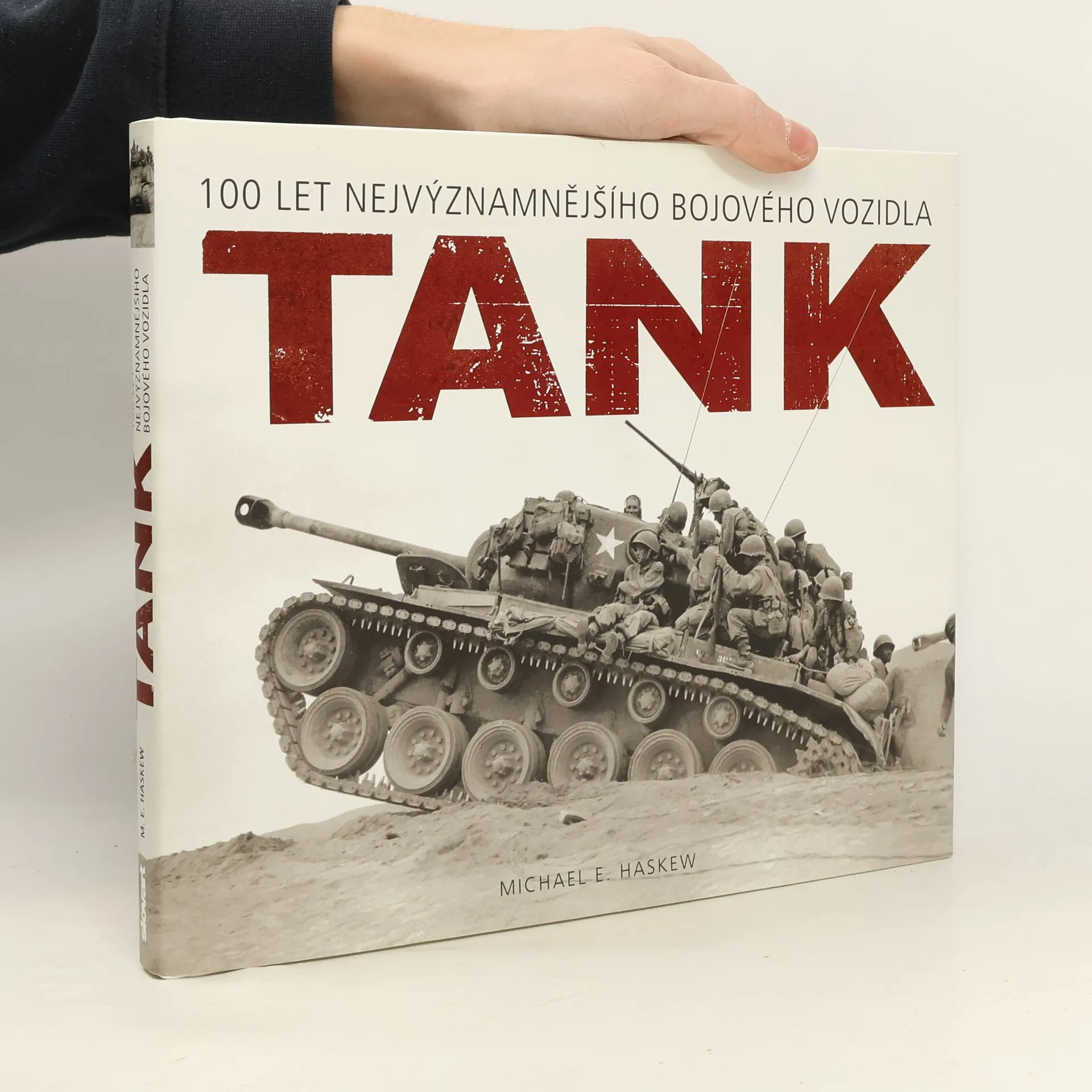 Historik vojenství Michael E. Haskew provádí čtenáře příběhem úžasného válečného stroje, který se poprvé objevil na bojištích 1. světové války. Autor začíná u obrněných předchůdců prvních tanků a popisuje vývoj těchto obrněných vozidel a jejich nasazení v obou světových válkách, v Koreji, Vietnamu, v období studené války, v různých regionálních konfliktech a ve válkách v Perském zálivu. Představuje přitom tucty legendárních konstrukcí - Mark IV, FT-17 a A7V z 1. světové války, americký M4 Sherman, německé řady Panzer a Tiger a sovětský T-34 z 2. světové války, vývoj, který následoval v podobě tanků M48 Patton, T-55 a M1A1 Abrams, a další stroje, jež na světě slouží v současné době. Čtenář se též setká s muži, kteří vsadili svou kariéru na budoucnost tanku - jako byli de Gaulle, Chaffee či Einsenhower - a s těmi, kteří si osvojili mistrovství v jejich bojovém nasazení a z nichž nejproslulejší byli Patton a Rommel. Navíc je Tank ilustrován pozoruhodnými archivními fotografiemi z bojišť, výcvikových středisek či z výrobních hal a obsahuje i ukázky soudobé propagandy a inzerátů vztahujících se k tanku jako k mocnému symbolu, který měl rozdmýchat vlastenecké nadšení. Výsledkem je příběh jako žádný jiný, příběh zbraně, jež od základu změnila válčení a stala se páteří vojenské moci.