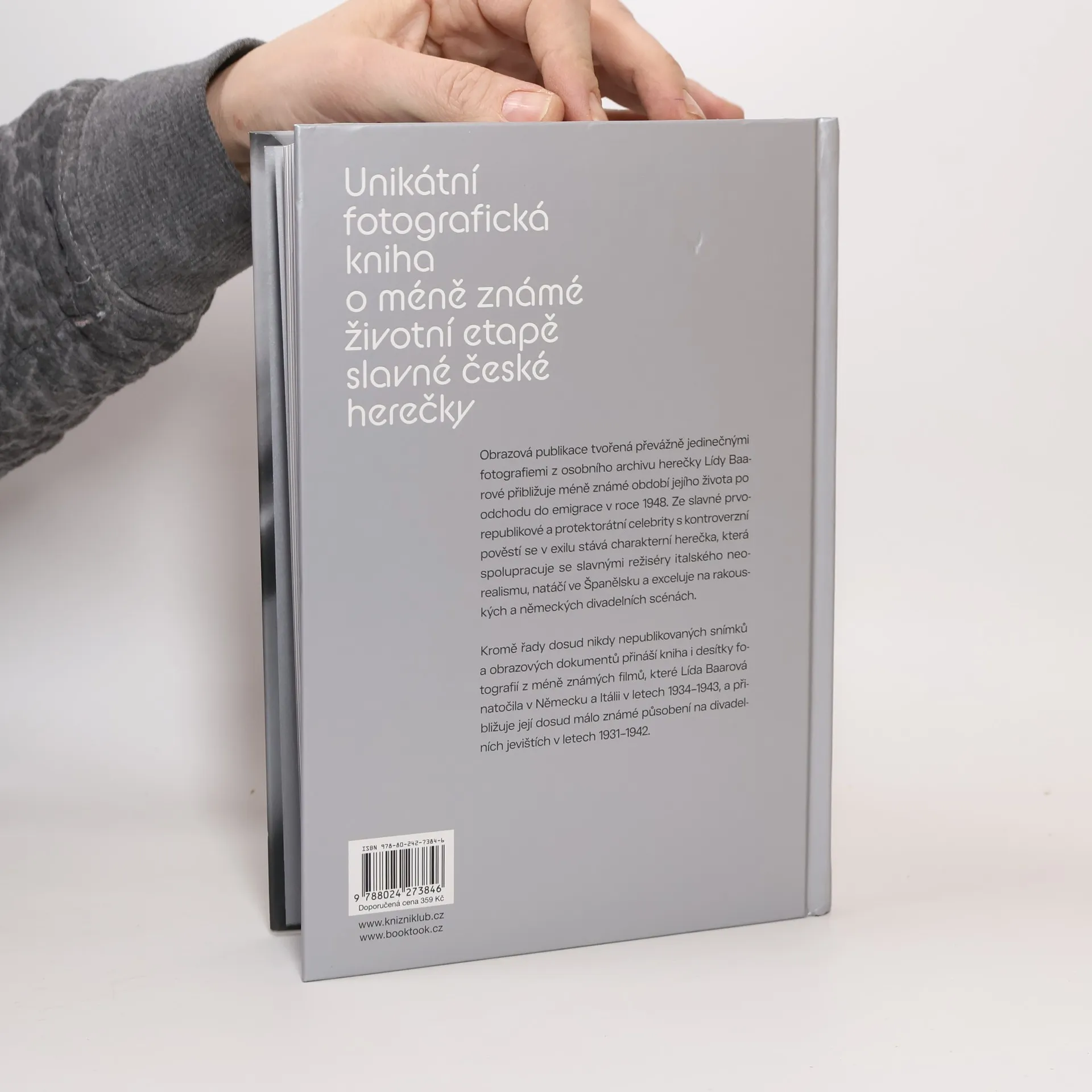 Obrazová publikace tvořená převážně unikátními fotografiemi z osobního archivu herečky Lídy Baarové přibližuje méně známé období jejího života po odchodu do emigrace v roce 1948. Ze slavné prvorepublikové a protektorátní celebrity s kontroverzní pověstí se v exilu stává charakterní herečka, která spolupracuje s režiséry italského neorealismu, natáčí v Madridu a vystupuje na rakouských a německých divadelních scénách, kde má obrovský úspěch například s Čapkovou „Věcí Makropulos“. Kniha přibližuje jinou, v Čechách téměř neznámou podobu herečky, která dokázala překonat těžké rány osudu. Obsáhlý obrazový materiál z rozsáhlého archivu sběratele Jiřího Tauchena přináší i desítky snímků z méně známých filmů, které Lída Baarová natočila v Německu a Itálii v letech 1934 až 1944.