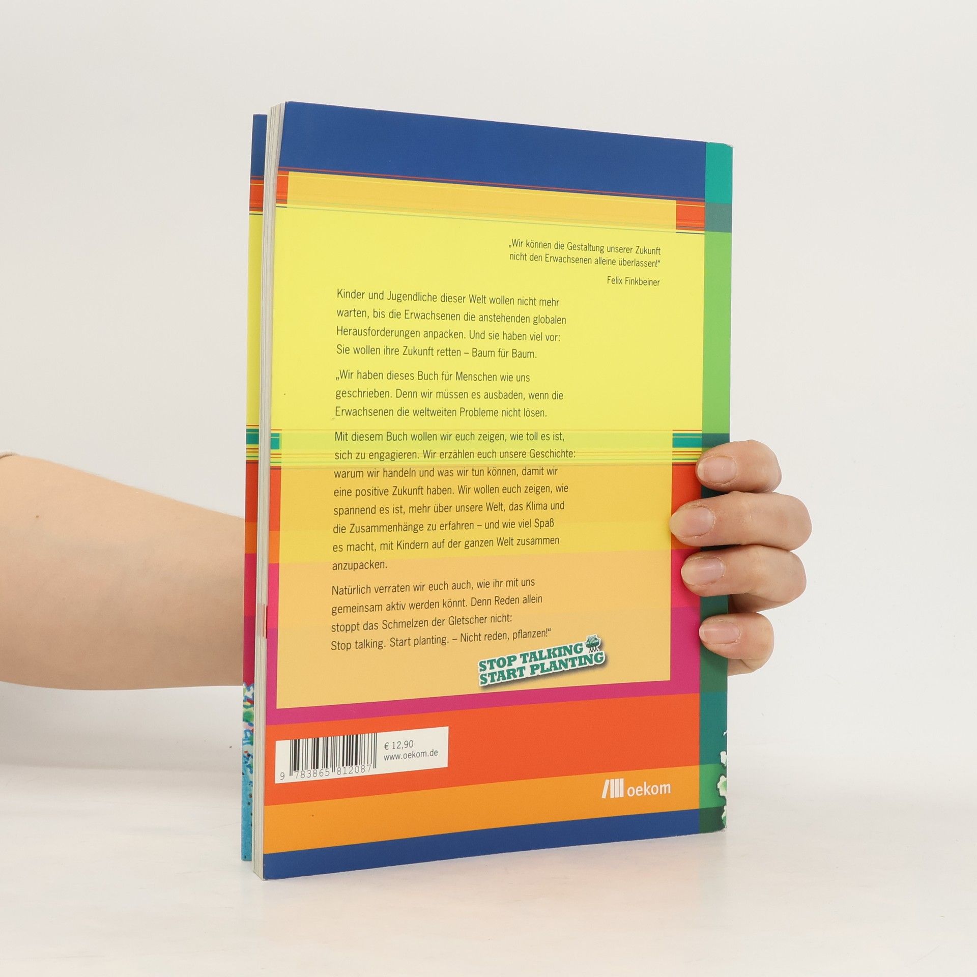 »Wir können die Gestaltung unserer Zukunft nicht den Erwachsenen alleine überlassen!« Felix Finkbeiner Kinder und Jugendliche dieser Welt wollen nicht mehr warten, bis die Erwachsenen die anstehenden globalen Herausforderungen anpacken. Und sie haben viel vor: Sie wollen ihre Zukunft retten – Baum für Baum. »Wir haben dieses Buch für Menschen wie uns geschrieben. Denn wir müssen es ausbaden, wenn die Erwachsenen die weltweiten Probleme nicht lösen. Mit diesem Buch wollen wir euch zeigen, wie toll es ist, sich zu engagieren. Wir erzählen euch unsere Geschichte: warum wir handeln und was wir tun können, damit wir eine positive Zukunft haben. Wir wollen euch zeigen, wie spannend es ist, mehr über unsere Welt, das Klima und die Zusammenhänge zu erfahren – und wie viel Spaß es macht, mit Kindern auf der ganzen Welt zusammen anzupacken. Natürlich verraten wir euch auch, wie ihr mit uns gemeinsam aktiv werden könnt. Denn Reden allein stoppt das Schmelzen der Gletscher nicht: Stop talking, Start planting! – Nicht reden, pflanzen!«