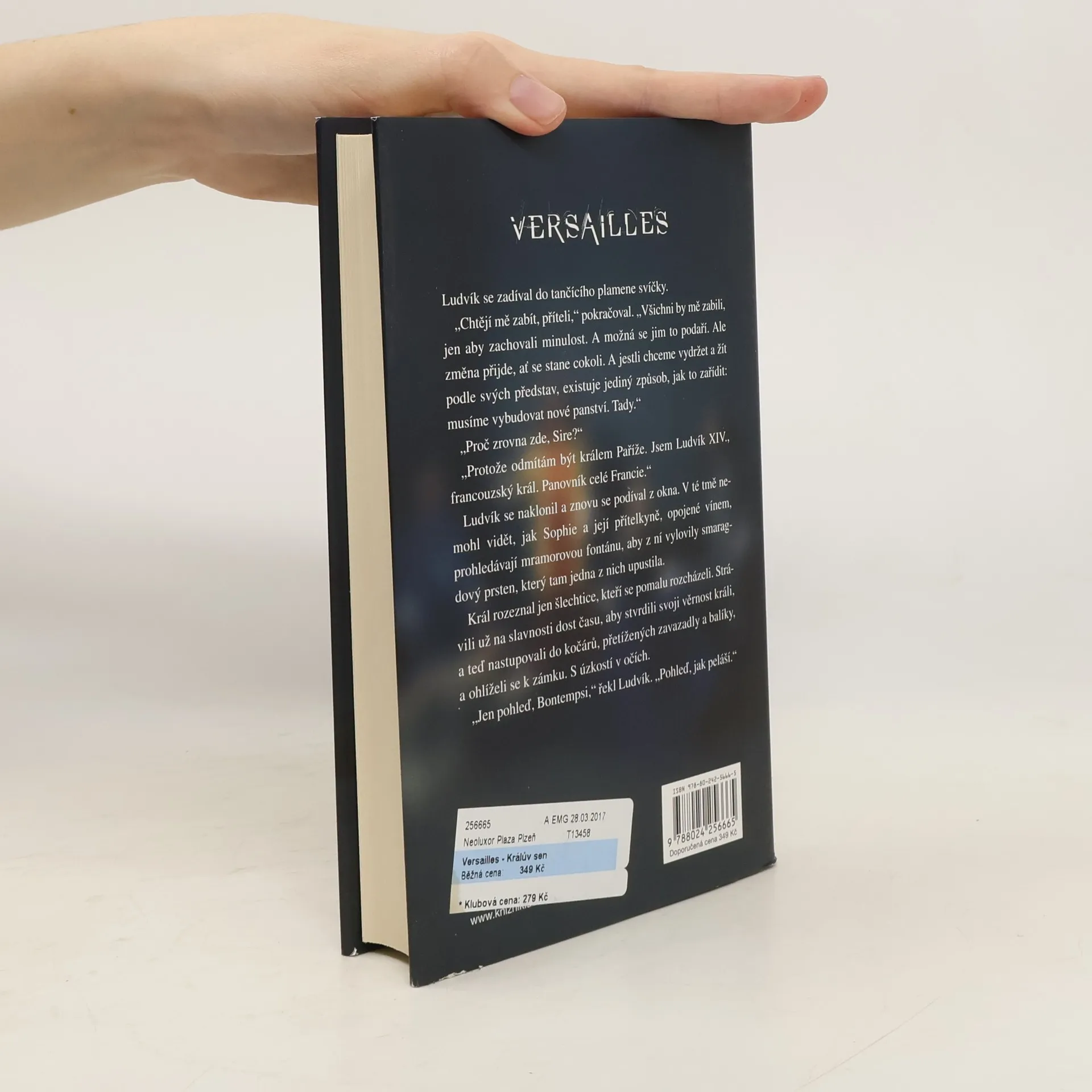 Strhující historický román poodhaluje tajemství jednoho z nejkrásnějších paláců v dějinách lidstva – francouzských Versailles. Král Ludvík XIV. je teprve na počátku své vlády a v nejisté a nebezpečné době se rozhodne vyjádřit svou absolutní moc opulentní a nákladnou stavbou královského sídla. Díky intrikám a chytré manipulaci se mu daří držet na uzdě vzpurnou pařížskou šlechtu a na novém úchvatném dvoře je může mít všechny pěkně na očích. Jenže na bitevním poli politiky stačí jediné selhání, a králův sen se obrátí v prach.