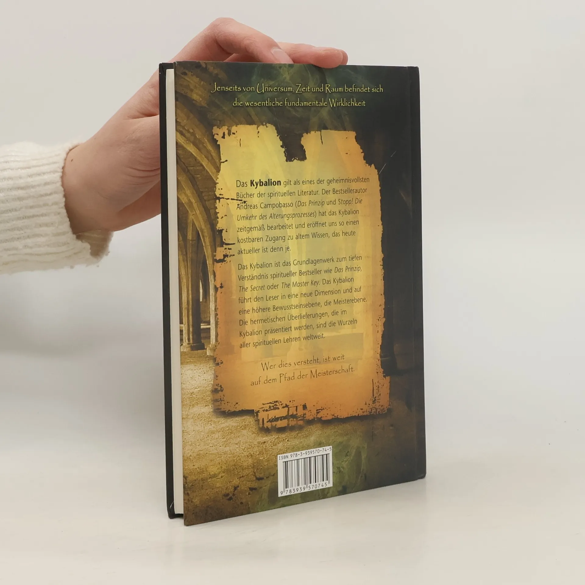 Das „Kybalion“ gilt als eines der geheimnisvollsten Bücher der spirituellen Literatur. Der Bestsellerautor Andreas Campobasso („Das Prinzip“ und „Stopp! Die Umkehr des Alterungsprozesses“) hat das Kybalion zeitgemäß bearbeitet und eröffnet uns so einen kostbaren Zugang zu altem Wissen, das heute aktueller ist denn je. Das Kybalion ist das Grundlagenwerk zum tiefen Verständnis spiritueller Bestseller wie „Das Prinzip“, „The Secret“ oder „The Master Key“. Das Kybalion führt den Leser in eine neue Dimension und auf eine höhere Bewusstseinsebene, die Meisterebene. Die hermetischen Überlieferungen, die im Kybalion präsentiert werden, sind die Wurzeln aller esoterischen Lehren weltweit. In jeder Generation gab es einige wenige Eingeweihte, die die heilige Flamme der hermetischen Lehren unterhielten, um das Licht der Wahrheit bei den Schülern zu entzünden, die dafür bereit sind. Nun ist die Zeit reif, dieses Licht in die Welt zu tragen zum Wohle des Ganzen: „Wohin die Schritte der Meister fallen, da öffnen sich weit die Ohren derjenigen, die bereit sind für ihre Lehre.“