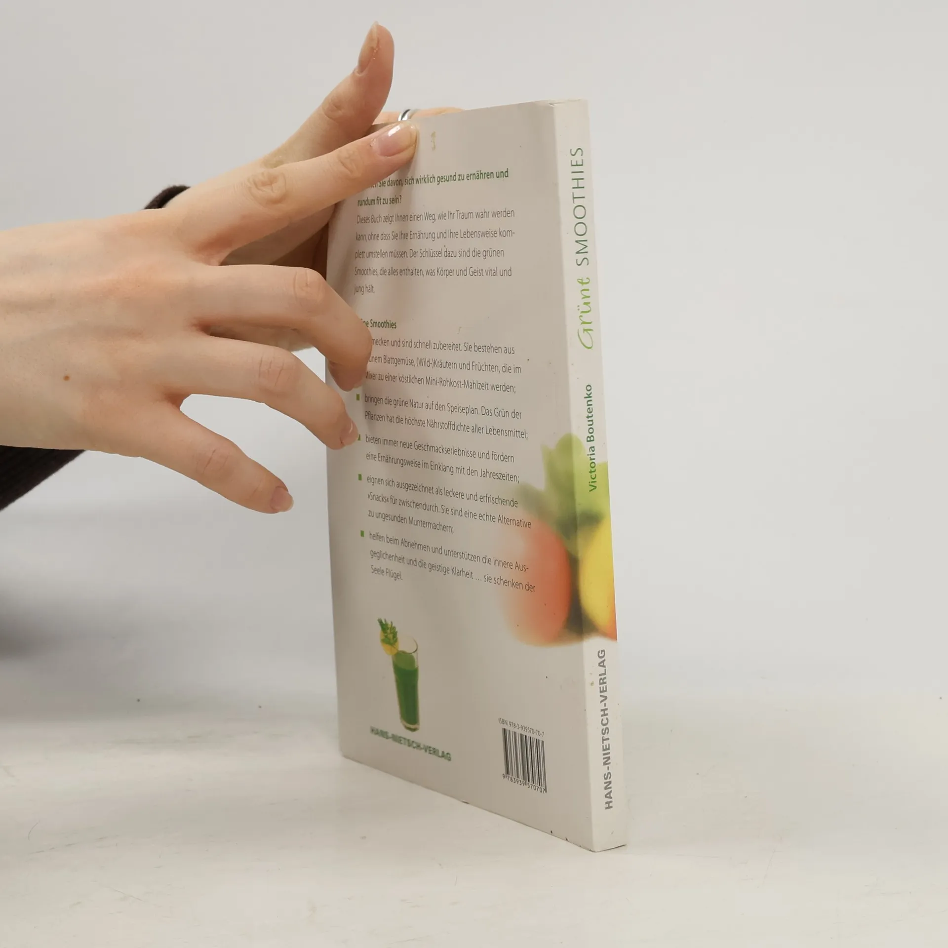 Heute ist es für viele Menschen nicht einfach, auf ihre Ernährung zu achten, denn der Alltag verlangt uns viel ab und lässt uns wenig Zeit. So essen wir dann mal eben etwas zwischendurch und leiden häufig unter Konzentrationsmangel, Schlaflosigkeit, Antriebslosigkeit oder einem anderen Symptom von Nährstoffmangel. Victoria Boutenkos Antwort auf diese ernährungsbedingten Probleme unserer Zeit sind die GRÜNEN SMOOTHIES. Dieser Wundertrank aus grünem Blattgemüse, anderem Gemüse, (Wild-)Kräutern, Obst und Wasser wird in einem leistungsstarken Mixer zubereitet und versorgt uns mit allem, was wir brauchen: Er ist ein wahres Füllhorn an Vitalstoffen – ungesättigten Fettsäuren, Vitaminen, Mineralstoffen, Spurenelementen, Enzymen und Antioxidantien – sowie Ballaststoffen, Proteinen und Kohlenhydraten … und schmeckt einfach köstlich! „Grüne Smoothies – Ein praktischer Ratgeber mit 200 leckeren Rezepten“. • lässt uns an den Erfahrungen teilhaben, die Victoria in den letzten Jahren mit den grünen Smoothies gewonnen hat; • beantwortet Fragen, die ihr häufig – von Menschen auf der ganzen Welt – gestellt werden; • gibt viele praktische Hinweise und Tipps rund um die Zubereitung von grünen Smoothies; • enthält ein Verzeichnis mit Heil- und Wildkräutern, die man selbst in der Natur sammeln kann, • und 200 hell- bis dunkelgrüne Smoothie-Rezepte, die einem das Wasser im Mund zusammenlaufen lassen und dazu inspirieren, selbst kreativ zu werden!
