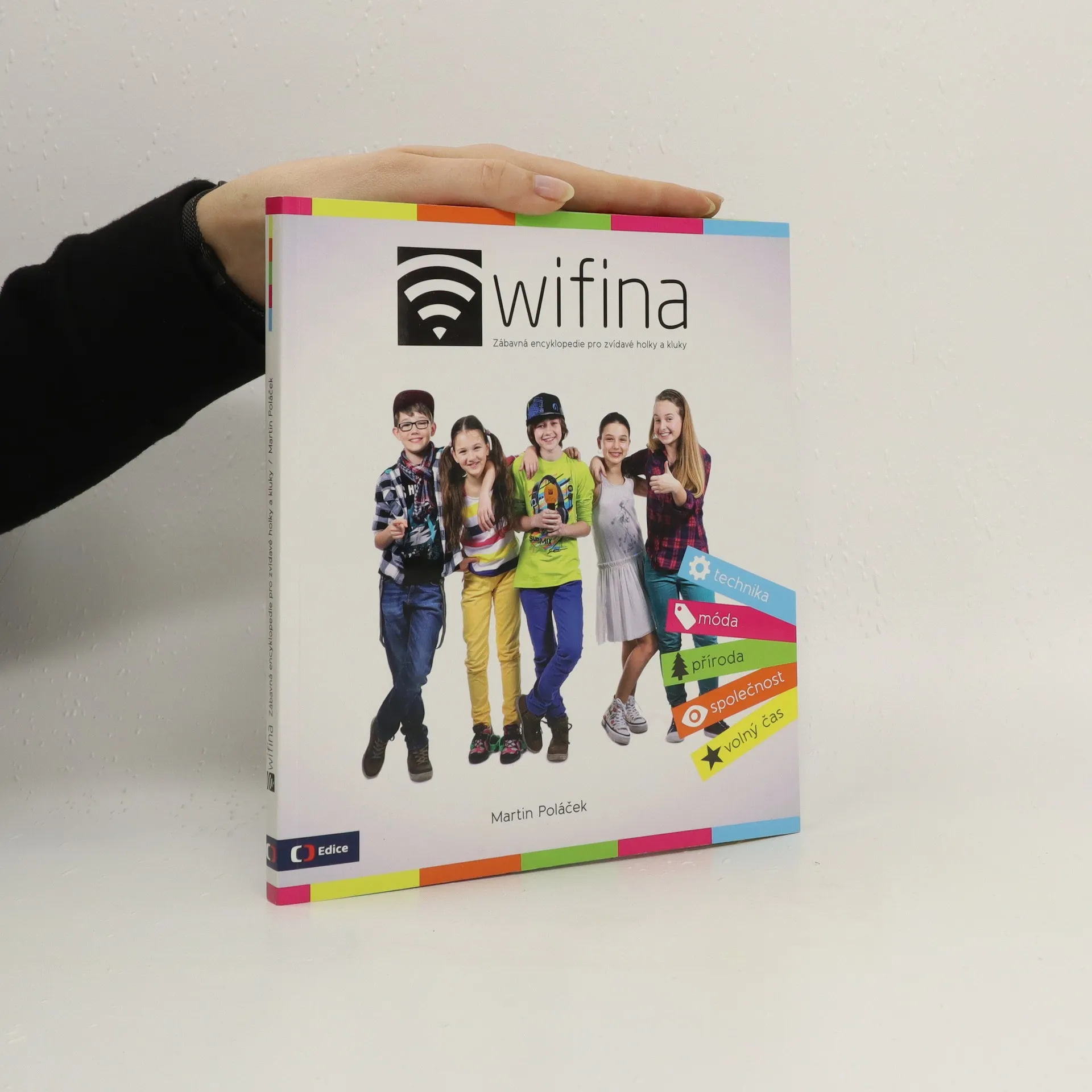 WIFINA je pořad, který se na obrazovce České televize objevil spolu se startem jejího dětského kanálu Déčko v září 2013. Dnes ho sledují již desetitisíce diváků a nejoblíbenější je mezi dětmi ve věku 9 až 10 let. Mnozí z nich by si také rádi zkusili, co na vlastní kůži zažívá pětice dětských reportérů – wifiňáků a co všechno se přitom dozví. KNIHA WIFINA jim to také umožní. Nabízí inspiraci a návod, jak si k určité základní informaci opatřit další, jak objevovat svět kolem nás, zpestřit si a rozšířit školní učivo. Výběr bezmála osmdesáti témat si wifiňáci v knize rozdělili stejně jako v pořadu – Veronika má ráda přírodu, Matěj uznává všechno, co se týká techniky, Jakub se věnuje životu ve společnosti, Tereza se zabývá tím, co dělat ve volném čase, a Karina holduje módě a hudbě. A protože se wifiňáci navzájem s oblibou trochu popichují, najdete i zde jejich „hlášky“ a komentáře. Dozvědět se něco víc je zkrátka zábava. S knihou Wifina to poznáte i vy!