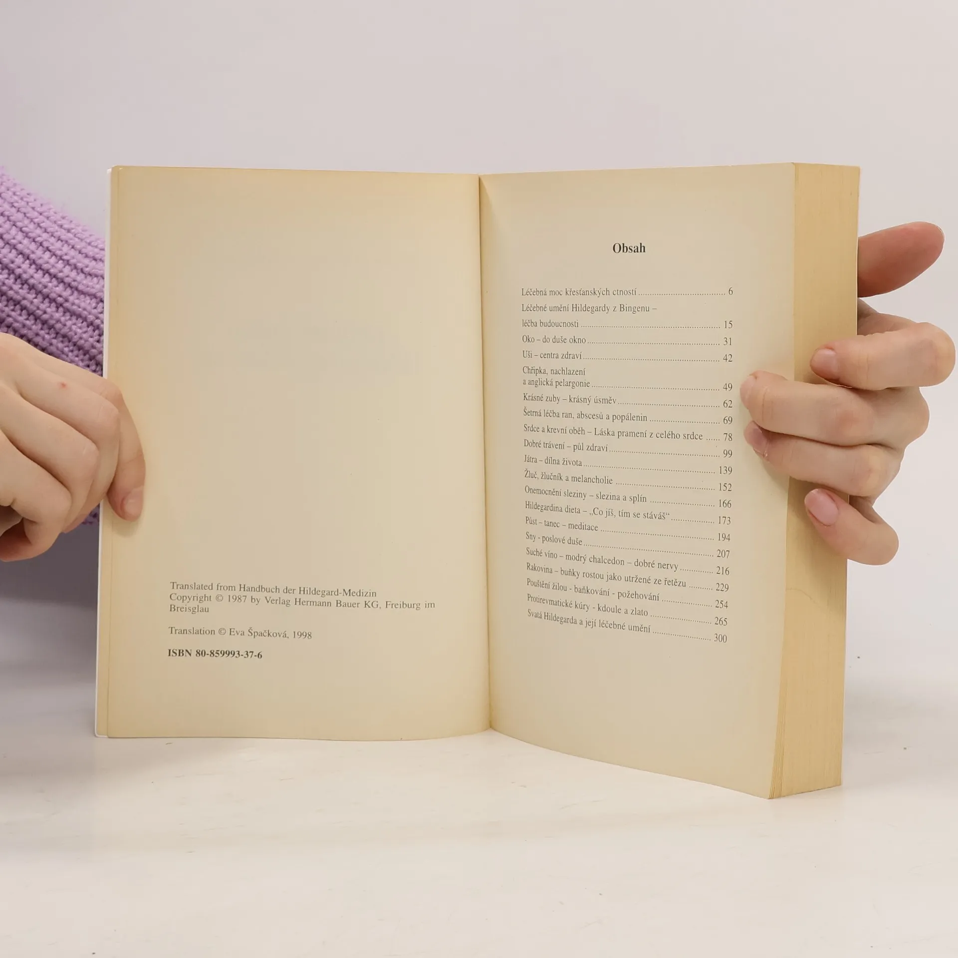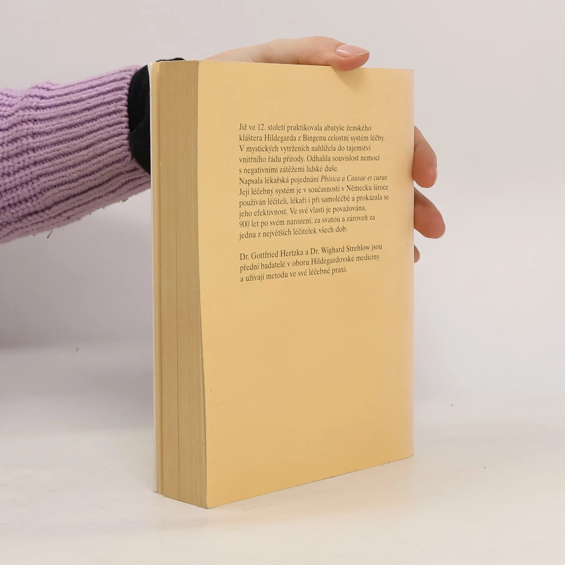 Podtitul: : Celostní léčebný systém středověké světice -- Byliny, drahé kameny, životospráva, požehování, baňkování, meditace, tanec, domácí samoléčba Již ve 12. stol. vytvořila abatyše ženského kláštera Hildegarda z Bingenu celostní systém léčby. Její léčebný systém jev současnosti v Německu široce používán léčiteli, lékaři i při samoléčbě a prokázala se jeho efektivnost.