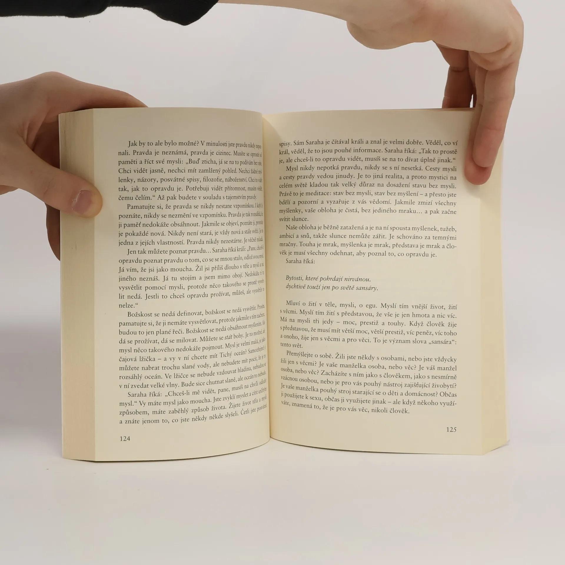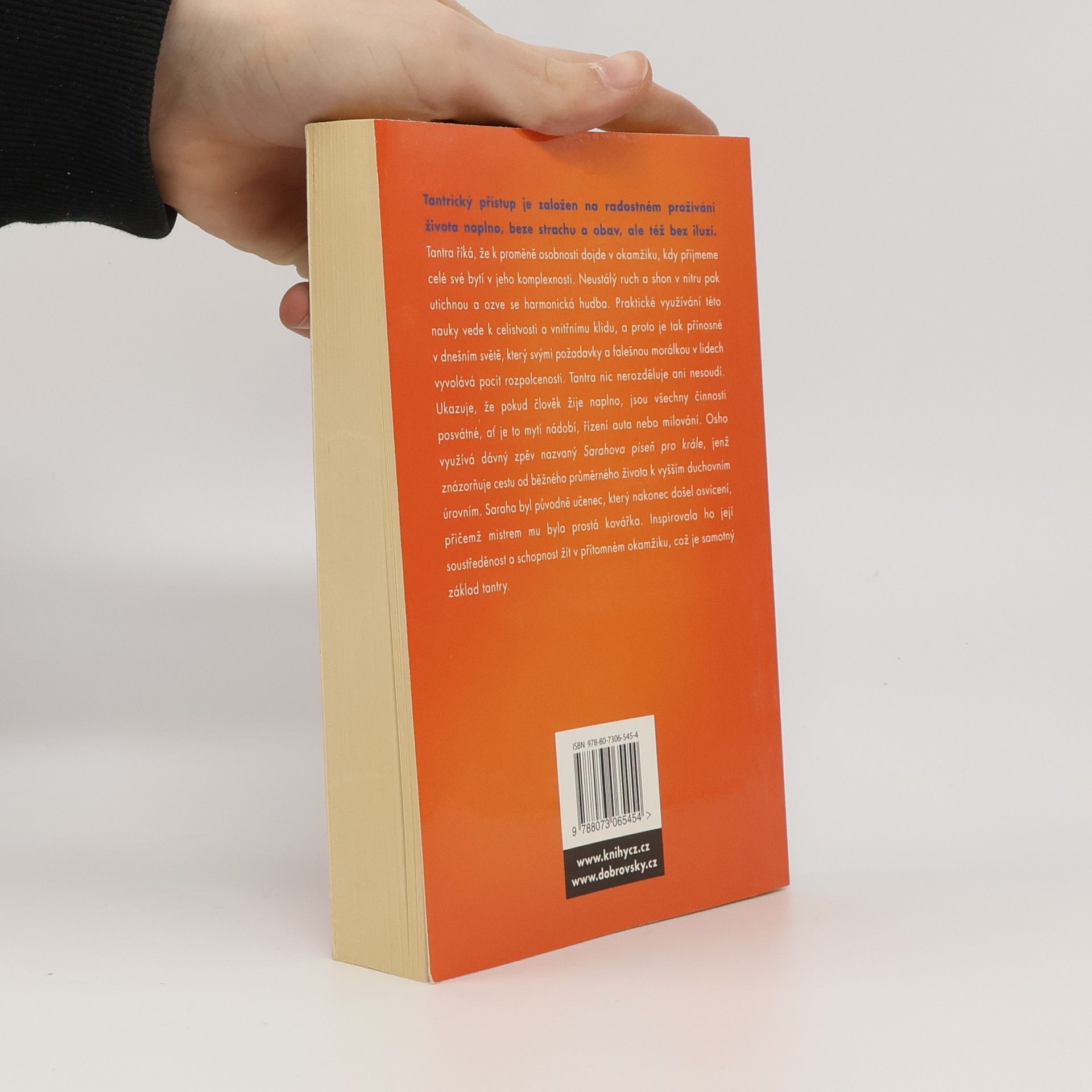 Evoluce prostřednictvím lásky Základním tématem těchto promluv mistra Osho je tantrický přístup k životu, jenž je založený na radosti, prožívání života naplno, beze strachu a obav. Je to naprosté propojení s existencí, která člověku nabízí nekonečně mnoho darů, ale lidé je většinou nevidí a nedokážou ocenit. Osho využívá dávný indický zpěv nazvaný Sarahova píseň pro krále, jehož jednotlivé sútry ukazují cestu od běžného průměrného života k vyšším duchovním úrovním. Je to píseň člověka, který opustil výhodné místo u dvora a našel si zvláštního gurua – kovářku vyrábějící šípy. K údivu všech lidí, kteří ho považovali za velkého mudrce, s ní pak žil na pohřebišti a zpíval a tančil. Jeho píseň je určena králi, jenž se ho snažil přemluvit, aby se vrátil k bývalému způsobu života. Ale Saraha mu ukázal, co je skutečný život prožívaný s radostí a nadšením. Osho na těchto sútrách objasňuje skutečnou podstatu tantry, která bývá na Západě často mylně chápána jako sexuální praktika, ale ve skutečnosti je sex pouhým odrazovým můstkem k nejvyšší úrovni života propojeného s celou existencí. A pouze takový život má skutečnou hodnotu a je oslavou každého přítomného okamžiku.
