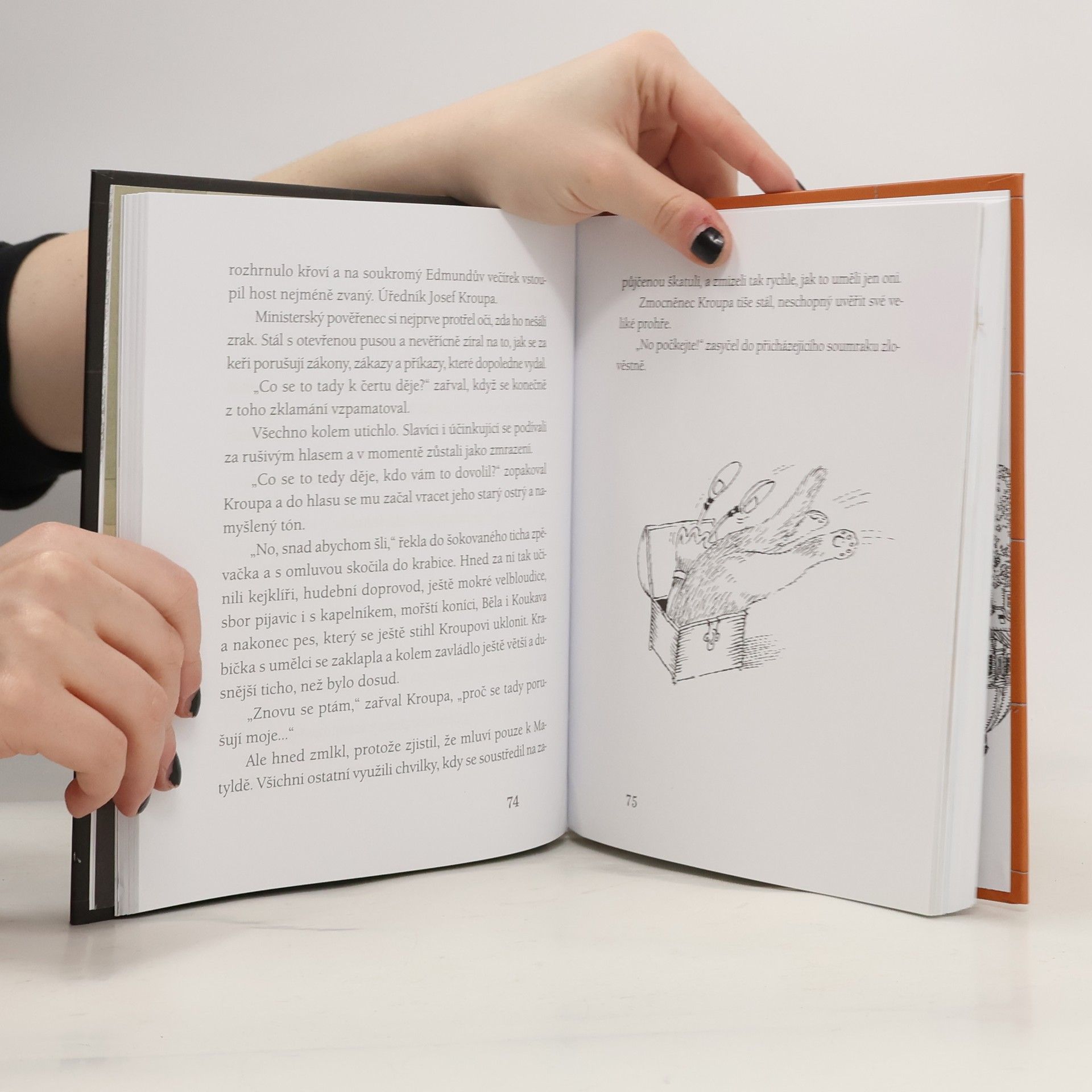 1. a 2. díl. Na zámku Červená Lhota se dobře daří kastelánu Pivoňkovi a jeho mlsné kočce Matyldě. Bývalý baletní mistr provází návštěvníky po zámku a žije v poklidu s místními strašidly. Jejich soužití je navýsost spokojené, vzájemně si pomáhají. Bohužel jen do okamžiku, kdy dorazí v rámci výletu emeritní pedagogové. Vede je matematik Bušta, kterému se nelíbí, když během prohlídky spatří nevysvětlitelné věci. Jeho protesty vyústí v souboj se strašidly a následný dopis na ministerstvo. Na zámek se vypraví úředník Josef Kroupa, který má zasáhnout a strašidla jednou provždy zrušit. Vývoj vůbec nevypadá dobře do okamžiku, kdy bývalá chůva Kristýna přesvědčí zavilého úředníka, že některé zákony a příkazy lze obejít… V druhé části sledujeme soužití Josefa Kroupy s krásnou Kristýnou v Praze. Půvabnému strašidlu se stýská po Lhotě a po přátelích. Pozve je na návštěvu, zažijí společně návštěvu Národního divadla a pak naplánují první lidsko-duší svatbu, která se odehraje na jihu Čech. Jenže cesta spanilé nevěsty neproběhne docela bez nehody, naštěstí je to bojovnice a nikdy se nevzdává. Veselé vyprávění o strašidlech, umanutých úřednicích a zavilých gengstrech humorem nešetří. Kniha je oboustranná, když čtenář dočte první díl do konce, stačí knihu obrátit a zase je na začátku. Rozverný jazyk Jiřího Holuba zručně podbarvil svými obrázky Juraj Martiška.