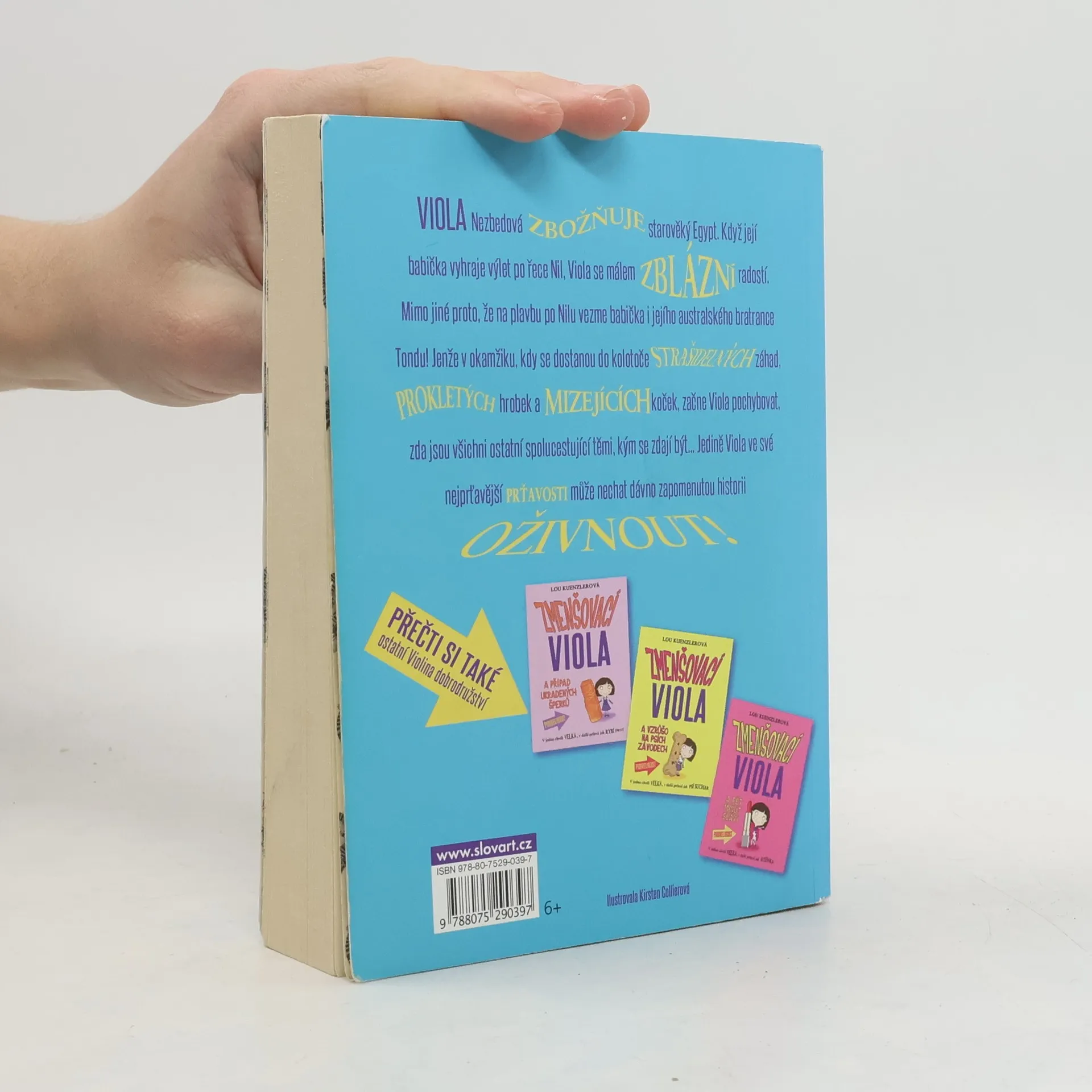 Viola Nezbedová starověký Egypt zbožňuje! Když se dozví, že její babička vyhrála plavbu po Nilu a vezme ji s sebou, je nadšením bez sebe. Jenže poté, co se z nevinné dovolené stane strašidelné dobrodružství, začíná Viola pochybovat: jsou ostatní turisté opravdu těmi, za koho se vydávají? Možná, že ve zmenšené podobě Viola přijde tajemstvím snáz na kloub! Čtvrtý díl vtipné a krásně ilustrované série o holčičce nadané neobvyklou schopností.