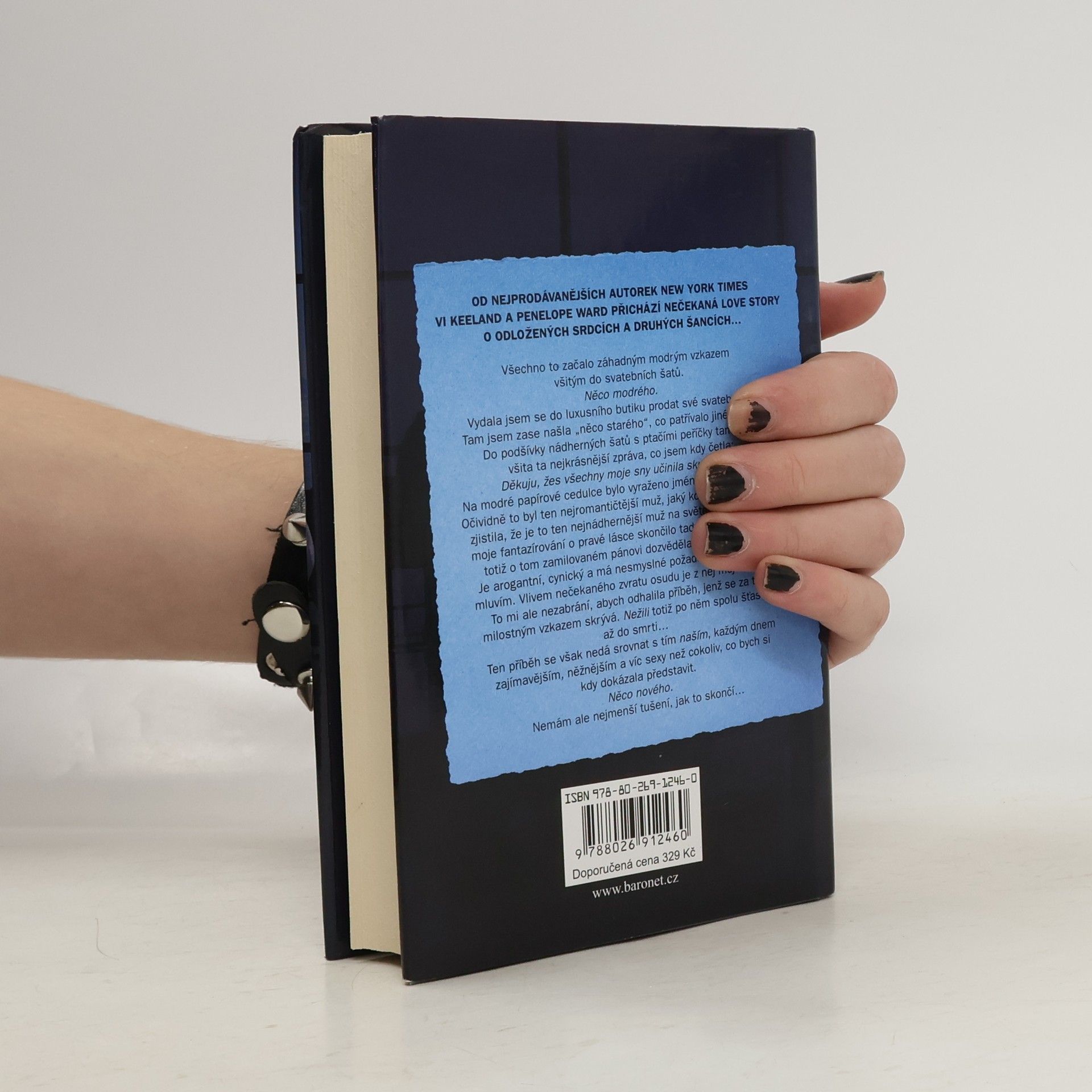 Od nejprodávanějších autorek New York Times Vi Keeland a Penelope Ward přichází nečekaná love story o odložených srdcích a druhých šancích… Všechno to začalo záhadným modrým vzkazem všitým do svatebních šatů. Něco modrého. Vydala jsem se do luxusního butiku prodat své vlastní svatební šaty. Tam jsem zase našla „něco starého“, co patřívalo jiné nevěstě. Do podšívky nádherných šatů s motivem ptačích per tam byla všita ta nejkrásnější zpráva, co jsem kdy četla: Děkuju ti, že jsi mi splnila všechny moje sny. Na modré papírové cedulce bylo vyraženo jméno Reed Eastwood. Očividně to byl ten nejromantičtější muž, jaký kdy žil. Rovněž jsem zjistila, že je to ten nejnádhernější muž na světě. Kdyby jen moje fantazírování o pravé lásce tady skončilo. Později jsem totiž o tom zamilovaném pánovi zjistila ještě další věci. Je arogantní, cynický a má nesmyslné požadavky. Vím, o čem mluvím. Vlivem nečekaného zvratu osudu je z něj můj nový šéf. To mě ale nezastaví, abych odhalila příběh, jenž se za tím milostným vzkazem skrývá. Milostným vzkazem, po němž spolu nežili šťastně až do smrti… Ten příběh se však nedá srovnat s tím naším, každým dnem zajímavějším, něžnějším a víc sexy než cokoliv, co bych si kdy dokázala představit. Něco nového. Nemám ale nejmenší tušení, jak to skončí…