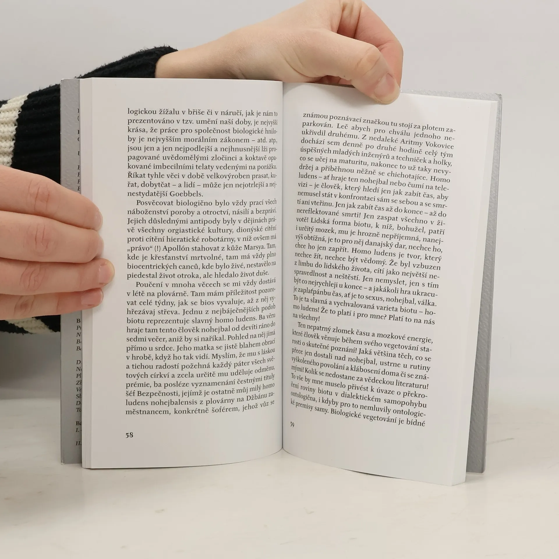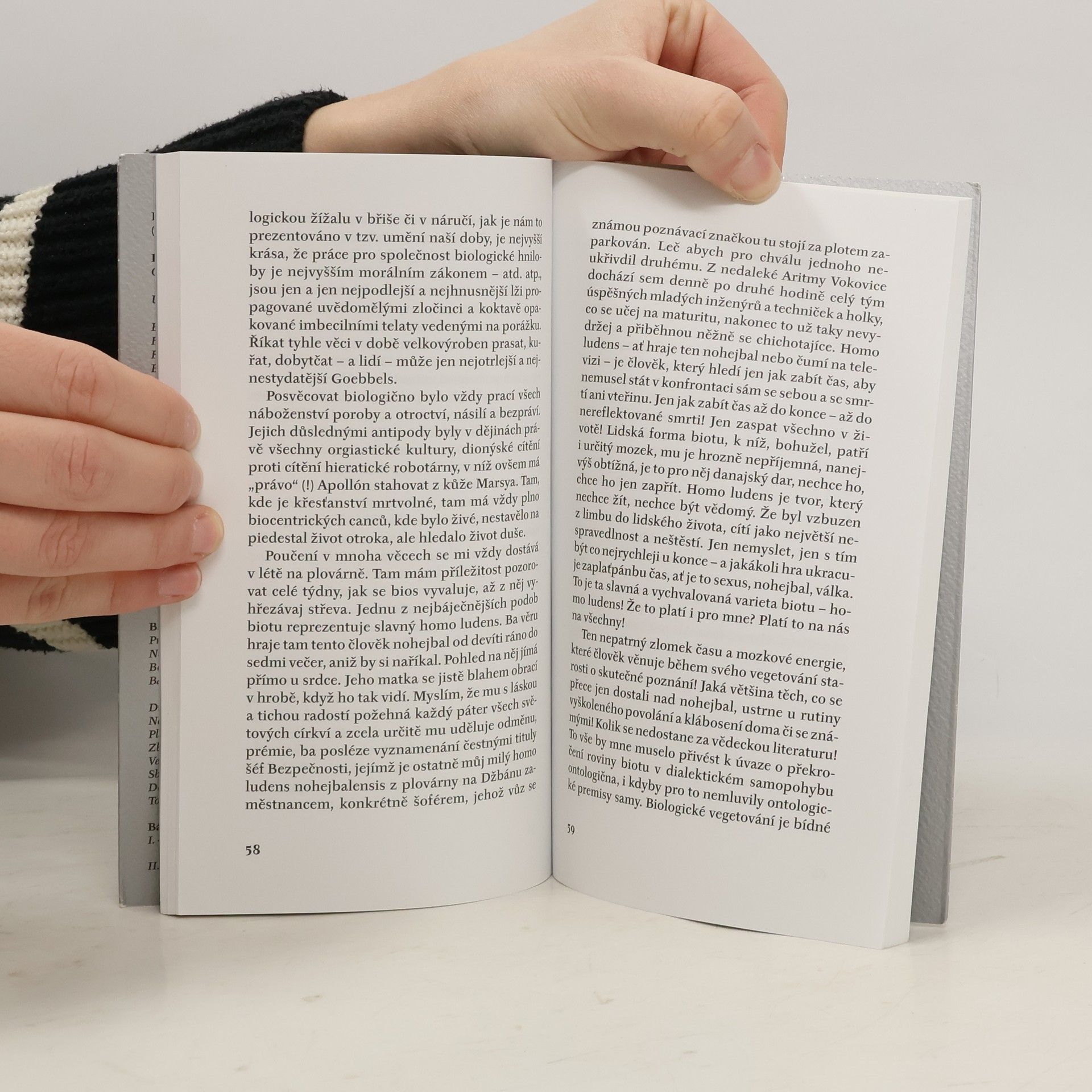 Druhé vydání prózy z roku 1977, která patří k tomu nejlepšímu, co básník, prozaik a filosof Egon Bondy (1930--2007) napsal. Úvahy, záznamy zážitků, expresivní postřehy o současnosti -- dílo kruté, nemilosrdné k autorovi i všemu, co jej obklopuje. Patos se zde mísí s vtipem a sarkasmem, vše je neseno proudem obrovského spisovatelova nasazení,opravdovostí a upřímností. Graficky upravil Viktor Karlík.