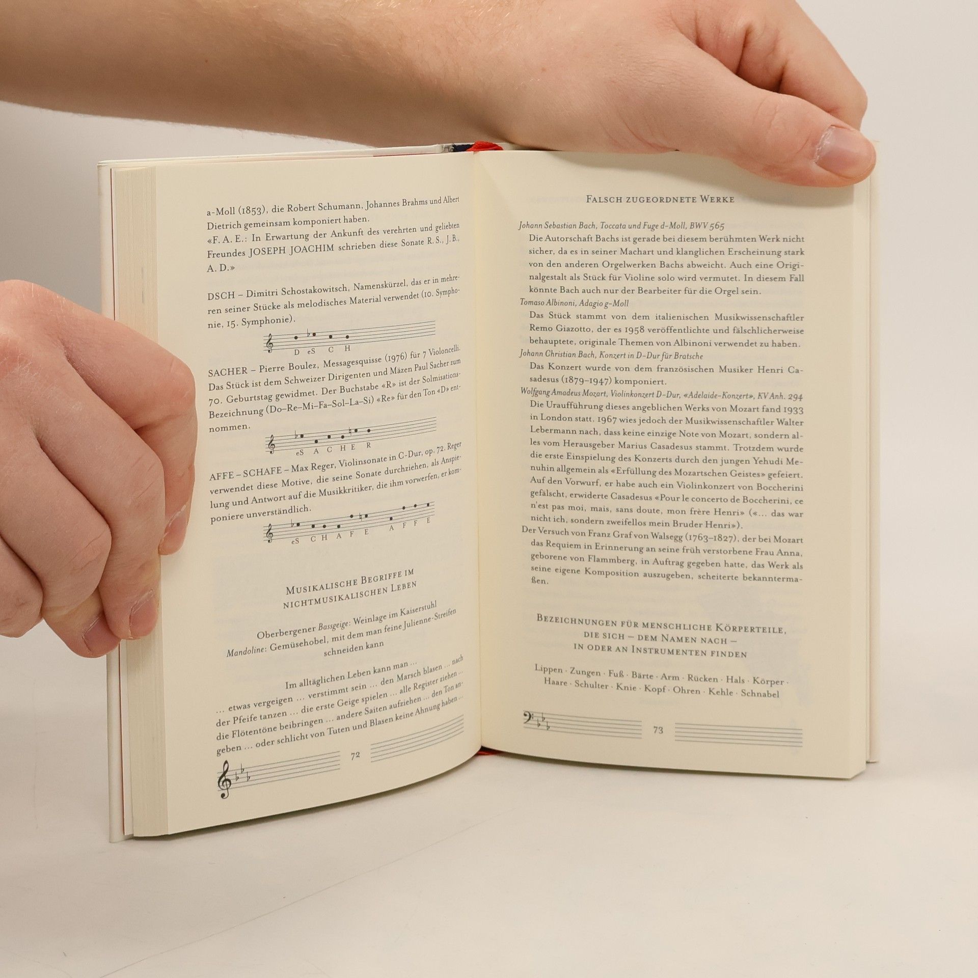 Wußten Sie, dass erst im Jahr 2639 der letzte Ton eines Orgelstückes von John Cage erklingen wird, das man seit 2001 in Halberstadt spielt? Oder dass sich Dirigenten gelegentlich beim Dirigieren schwere, ja tödliche Verletzungen zufügen, wie der unglückliche Jean-Baptiste Lully am Hof Ludwigs XIV.? Möchten Sie letzte Worte kennenlernen, die in Opern gesprochen werden - wie etwa: "Man töte dieses Weib" (Strauß, Salome), "Ein Aff, ein Aff, ein Aff" (Henze, Der junge Lord)? Oder interessieren Sie sich für Musiker, die zu Mördern wurden? Vielleicht wollen Sie aber auch einfach nur Beethovens Wohnadressen wissen oder die letzten Ruhestätten von Musikern? Oder was die Lieblingsgerichte von Komponisten waren bzw. welche Komponisten einen Bart trugen? Vielleicht interessieren Sie sich für die schönsten Beschimpfungen unter Orchestermusikern oder welche Instrumente ausgestorben sind, welches Gewicht Taktstöcke haben, wie hoch die Gage der Stars ist, welche Hosenrollen es gibt, welche deutschen Städte Orchester haben, welches die größten Orchester der USA sind oder gar, wo Sie selbst ein Orchester anmieten und dirigieren können