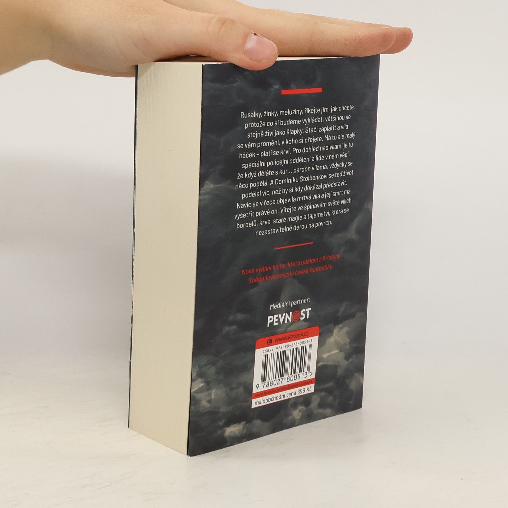 Rusalky, žínky, meluzíny, říkejte jim, jak chcete, protože co si budeme vykládat, většinou se stejně živí jako šlapky. Stačí zaplatit a víla se vám promění, v koho si přejete. Má to ale malý háček – platí se krví. Pro dohled nad vílami je tu speciální policejní oddělení a lidé v něm vědí, že když děláte s kur... pardon vílama, vždycky se něco podělá. A Dominiku Stolbenkovi se teď život podělal víc, než by si kdy dokázal představit. Navíc se v řece objevila mrtvá víla a její smrt má vyšetřit právě on. Vítejte ve špinavém světě vílích bordelů, krve, staré magie a tajemství, která se nezastavitelně derou na povrch. Nové vydání knihy, která udělala z Kristýny Sněgoňové hvězdu české fantastiky.