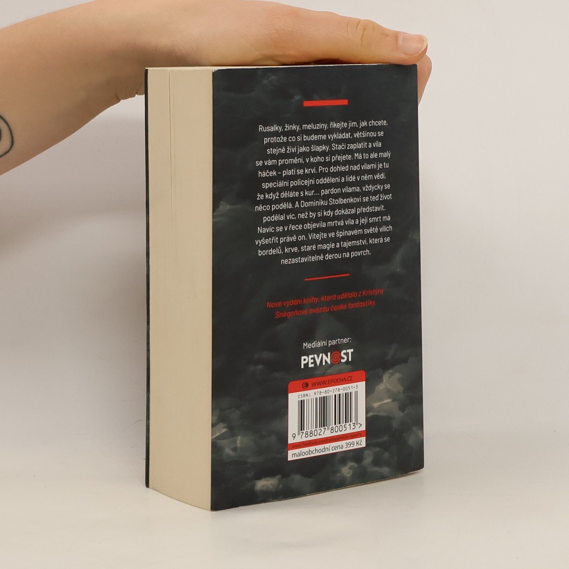 Rusalky, žínky, meluzíny, říkejte jim, jak chcete, protože co si budeme vykládat, většinou se stejně živí jako šlapky. Stačí zaplatit a víla se vám promění, v koho si přejete. Má to ale malý háček – platí se krví. Pro dohled nad vílami je tu speciální policejní oddělení a lidé v něm vědí, že když děláte s kur... pardon vílama, vždycky se něco podělá. A Dominiku Stolbenkovi se teď život podělal víc, než by si kdy dokázal představit. Navíc se v řece objevila mrtvá víla a její smrt má vyšetřit právě on. Vítejte ve špinavém světě vílích bordelů, krve, staré magie a tajemství, která se nezastavitelně derou na povrch. Nové vydání knihy, která udělala z Kristýny Sněgoňové hvězdu české fantastiky.