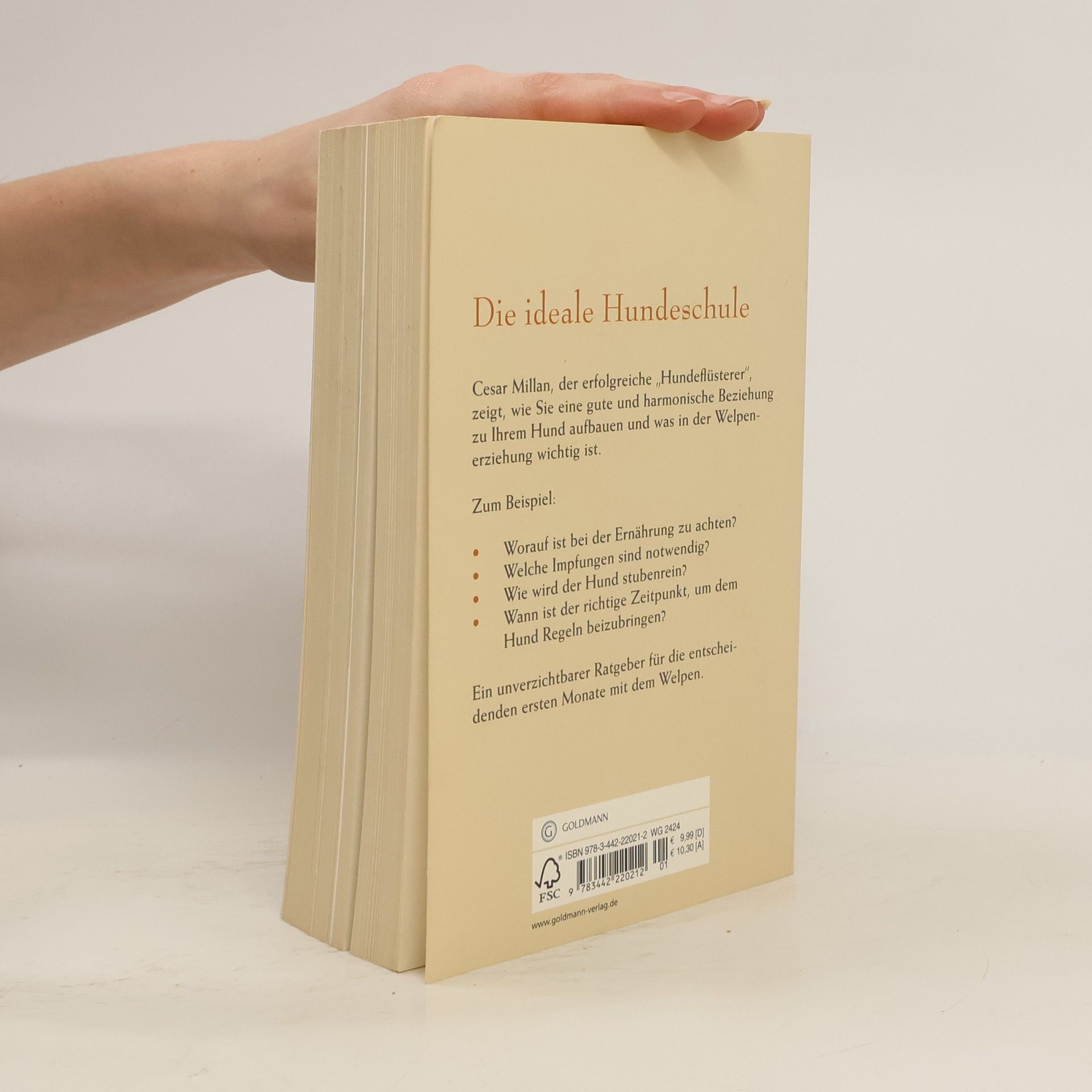 Nur die gute Welpenschule führt zu einer glücklichen Beziehung von Herrn und Hund Cesar Millan hat bereits tausenden Hundebesitzern geholfen, ihren geliebten Gefährten besser zu verstehen und das Zusammenleben optimal zu gestalten. Dieses Buch enthält alles, was man für die perfekte Hundeerziehung wissen muss. Worauf ist bei der Ernährung zu achten? Welche Impfungen sind notwendig? Wie wird der Hund stubenrein? Wann ist der richtige Zeitpunkt, um dem Hund Regeln beizubringen? Mit seinen praxiserprobten Ratschlägen wird der renommierte und sympathische »Hundeflüsterer« zum unverzichtbaren Coach für die ersten Monate mit dem Welpen – und ebnet den Weg für eine lebenslange erfüllte Beziehung zwischen Mensch und Hund. Ausstattung: 8 Farbtafeln, div. s/w. Fotos