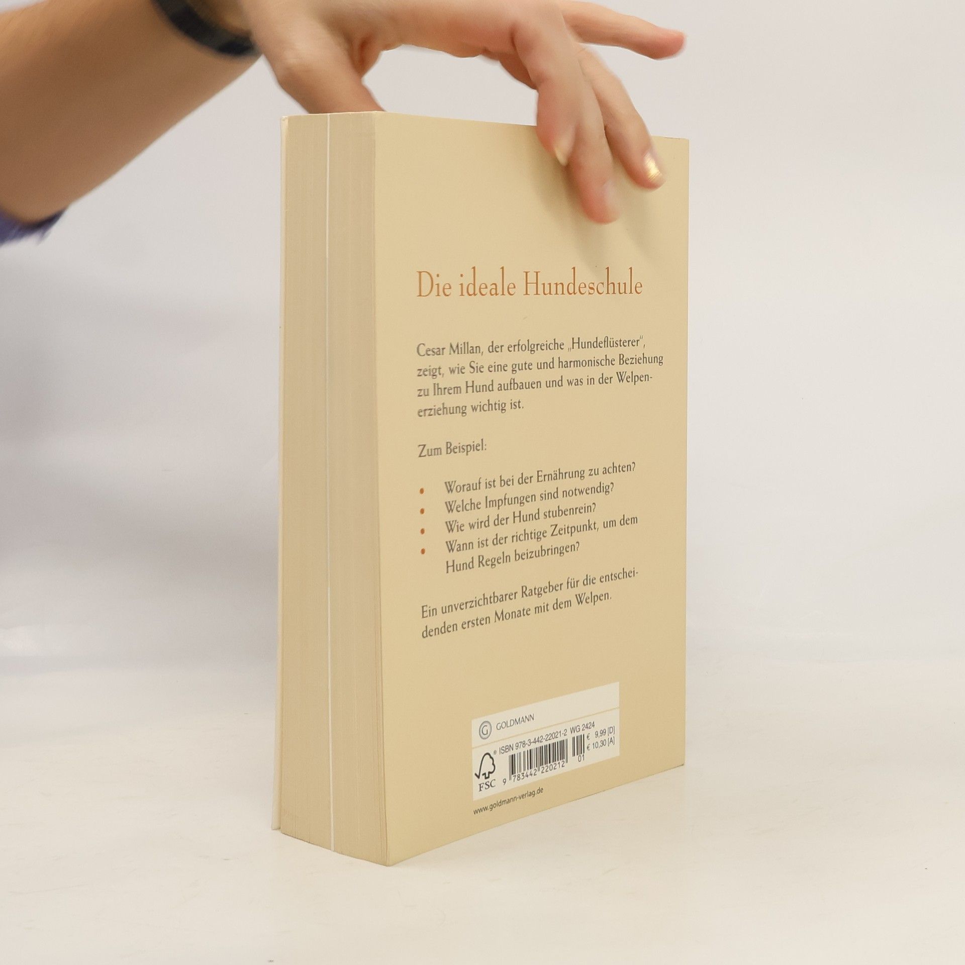 Nur die gute Welpenschule führt zu einer glücklichen Beziehung von Herrn und Hund Cesar Millan hat bereits tausenden Hundebesitzern geholfen, ihren geliebten Gefährten besser zu verstehen und das Zusammenleben optimal zu gestalten. Dieses Buch enthält alles, was man für die perfekte Hundeerziehung wissen muss. Worauf ist bei der Ernährung zu achten? Welche Impfungen sind notwendig? Wie wird der Hund stubenrein? Wann ist der richtige Zeitpunkt, um dem Hund Regeln beizubringen? Mit seinen praxiserprobten Ratschlägen wird der renommierte und sympathische »Hundeflüsterer« zum unverzichtbaren Coach für die ersten Monate mit dem Welpen – und ebnet den Weg für eine lebenslange erfüllte Beziehung zwischen Mensch und Hund. Ausstattung: 8 Farbtafeln, div. s/w. Fotos