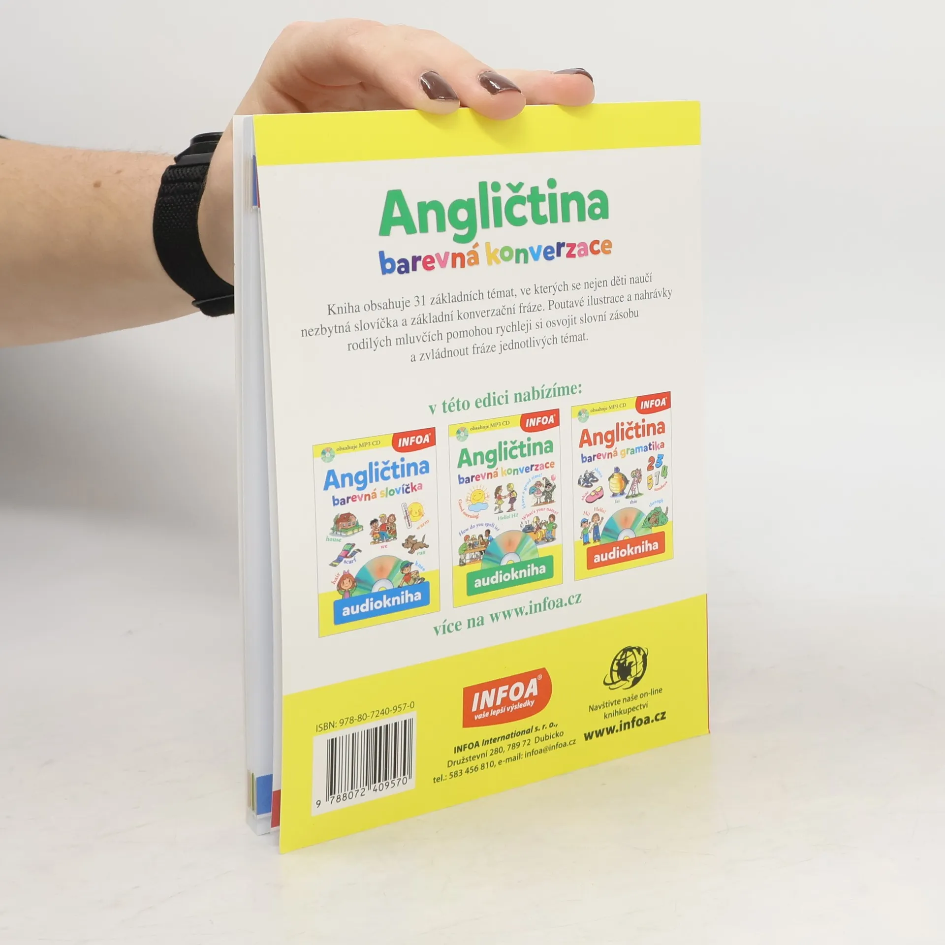 Kniha obsahuje 31 základních témat, ve kterých se nejen děti naučí nezbytná slovíčka a základní konverzační fráze. Poutavé ilustrace a nahrávky rodilých mluvčích pomohou rychleji si osvojit slovní zásobu a zvládnout fráze jednotlivých témat.