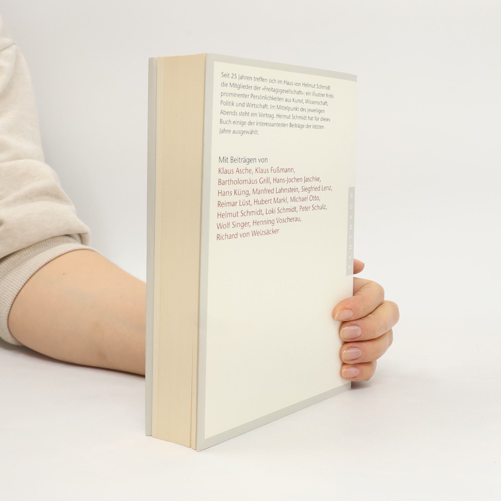 Freitagabend im Hause SchmidtSeit 25 Jahren treffen sich in Helmut Schmidts Haus die Mitglieder der »Freitagsgesellschaft«: ein illustrer Kreis prominenter Persönlichkeiten aus Kunst, Wissenschaft, Politik und Wirtschaft. Im Mittelpunkt des jeweiligen Abends steht ein Vortrag. Helmut Schmidt hat für dieses Buch einige der interessantesten Beiträge der letzten Jahre ausgewählt. Die Treffen der Hamburger »Freitagsgesellschaft« sind heute schon legendär. Politiker und Unternehmer, Künstler, Ärzte und Wissenschaftler unterrichten sich gegenseitig über die neuesten Entwicklungen auf ihrem jeweiligen Gebiet und diskutieren Fragen des öffentlichen Wohls. Durch die von Helmut Schmidt vorgelegte Auswahl ihrer Vorträge gewinnen wir vertiefende Einsichten in unterschiedlichste Wissensbereiche. Ob Wolf Singer sich mit den Grenzregionen von Gehirn und Bewusstsein beschäftigt, Siegfried Lenz uns von seiner Faszination durch Märchen erzählt, Hans Küng die drei abrahamischen Religionen vorstellt oder Richard von Weizsäcker die offene deutsche Frage nach zweihundert Jahren endlich gelöst sieht – hier schreiben herausragende Persönlichkeiten über spannende Themen, die uns alle angehen und die zum Nachdenken über den Zustand unserer Gesellschaft und die Zukunft unserer Welt einladen.