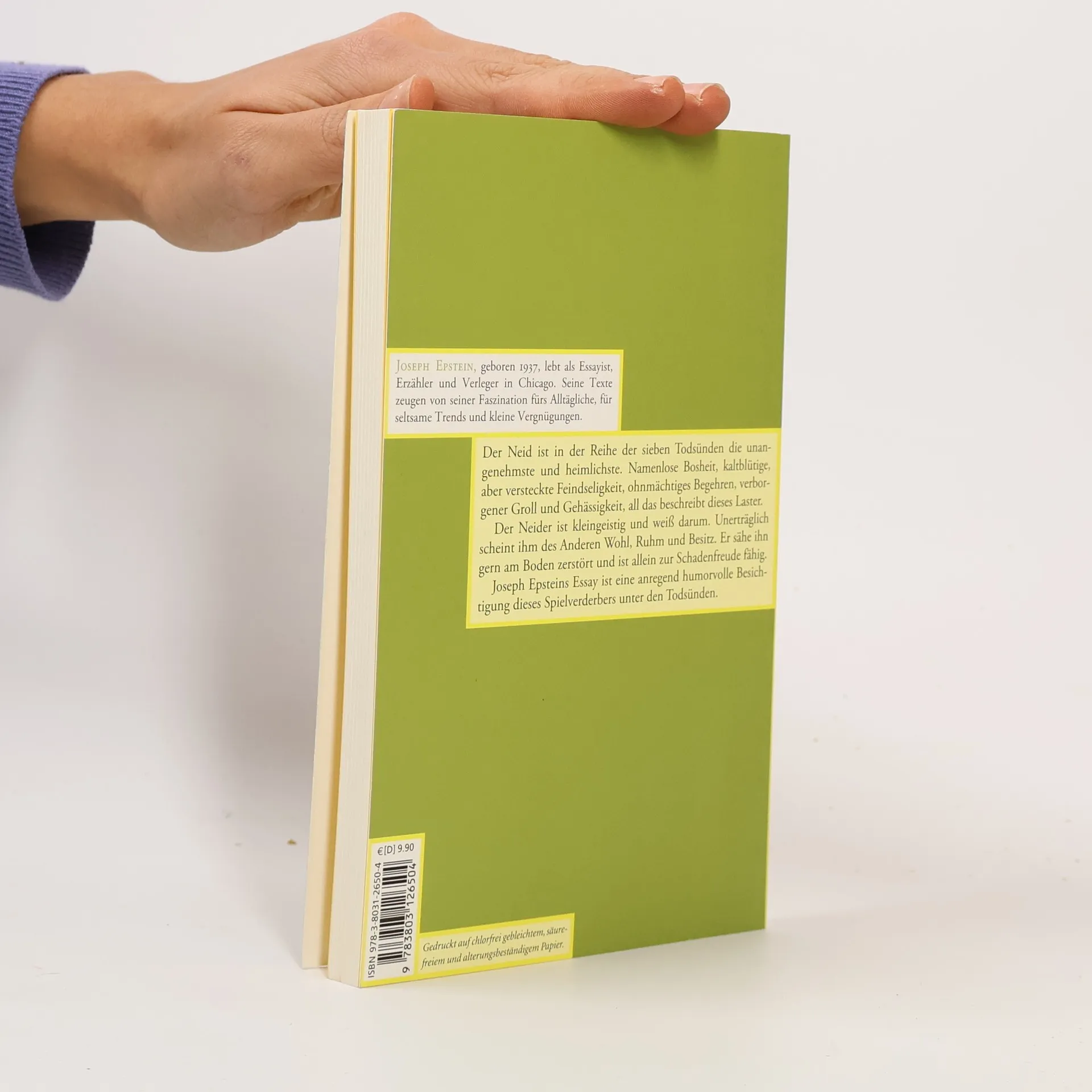 Der Neid ist in der Reihe der sieben Todsünden die unangenehmste und heimlichste. Namenlose Bosheit, kaltblütige, aber heimliche Feindseligkeit, ohnmächtiges Begehren, verborgener Groll und Gehässigkeit, all das beschreibt dieses Laster. Der Neider ist kleingeistig und weiß darum. Unerträglich scheint ihm des Anderen Wohl, Ruhm und Besitz. Er sähe ihn gern am Boden zerstört und ist allein zur Schadenfreude fähig. Joseph Epstein begibt sich in seinem Essay in den Sumpf dieses vollkommen unlustigen Gefühls. Er erzählt von den neiderfüllten Geschichten der Bibel, wägt die Definitionen der Philosophie gegeneinander ab und durchquert Psychoanalyse und Marxismus. Nichts fällt dem Autor zur Verteidigung dieses niedrigen und destruktiven Gefühls ein – sein Text aber ist auf beneidenswerte Weise humorvoll, kurzweilig und informativ!