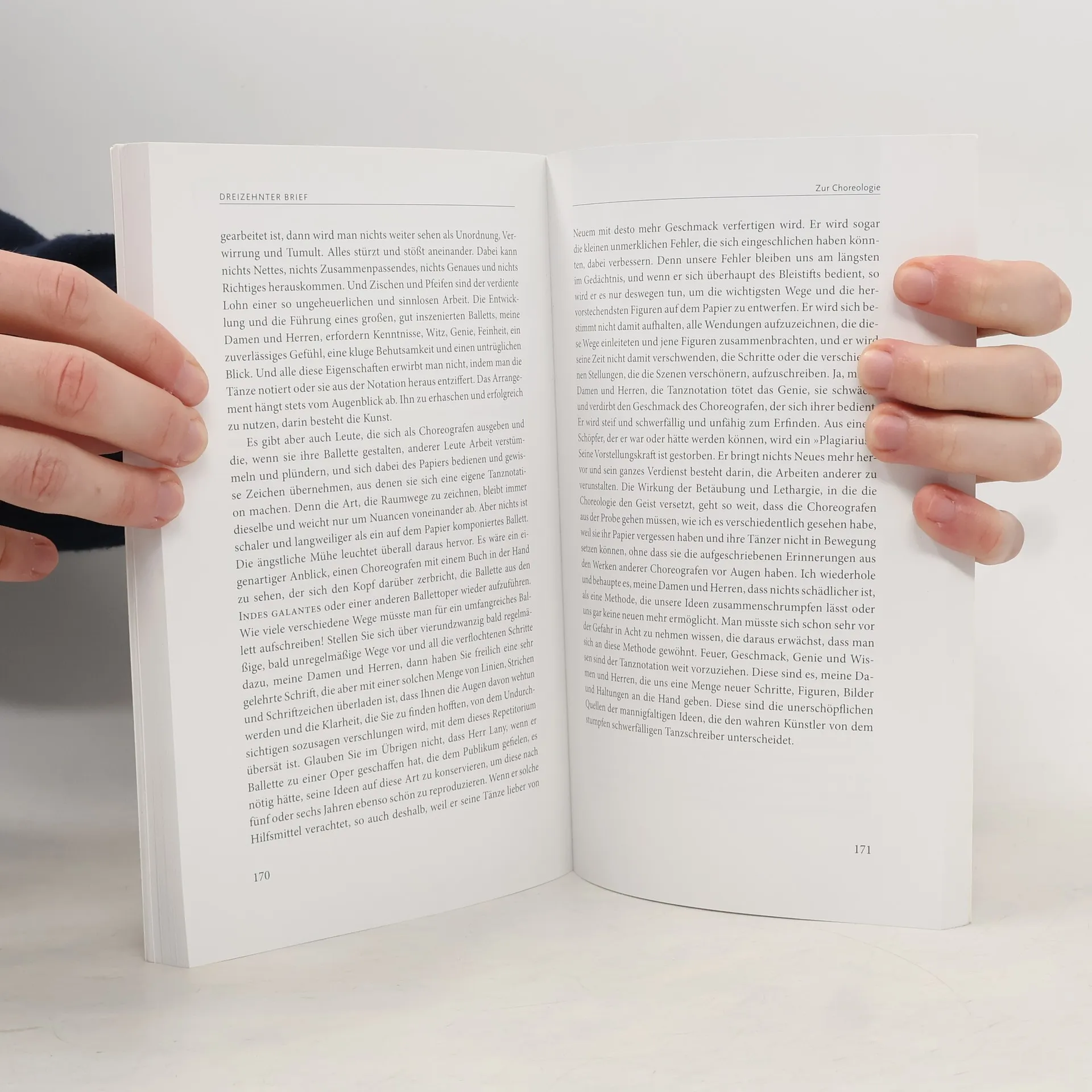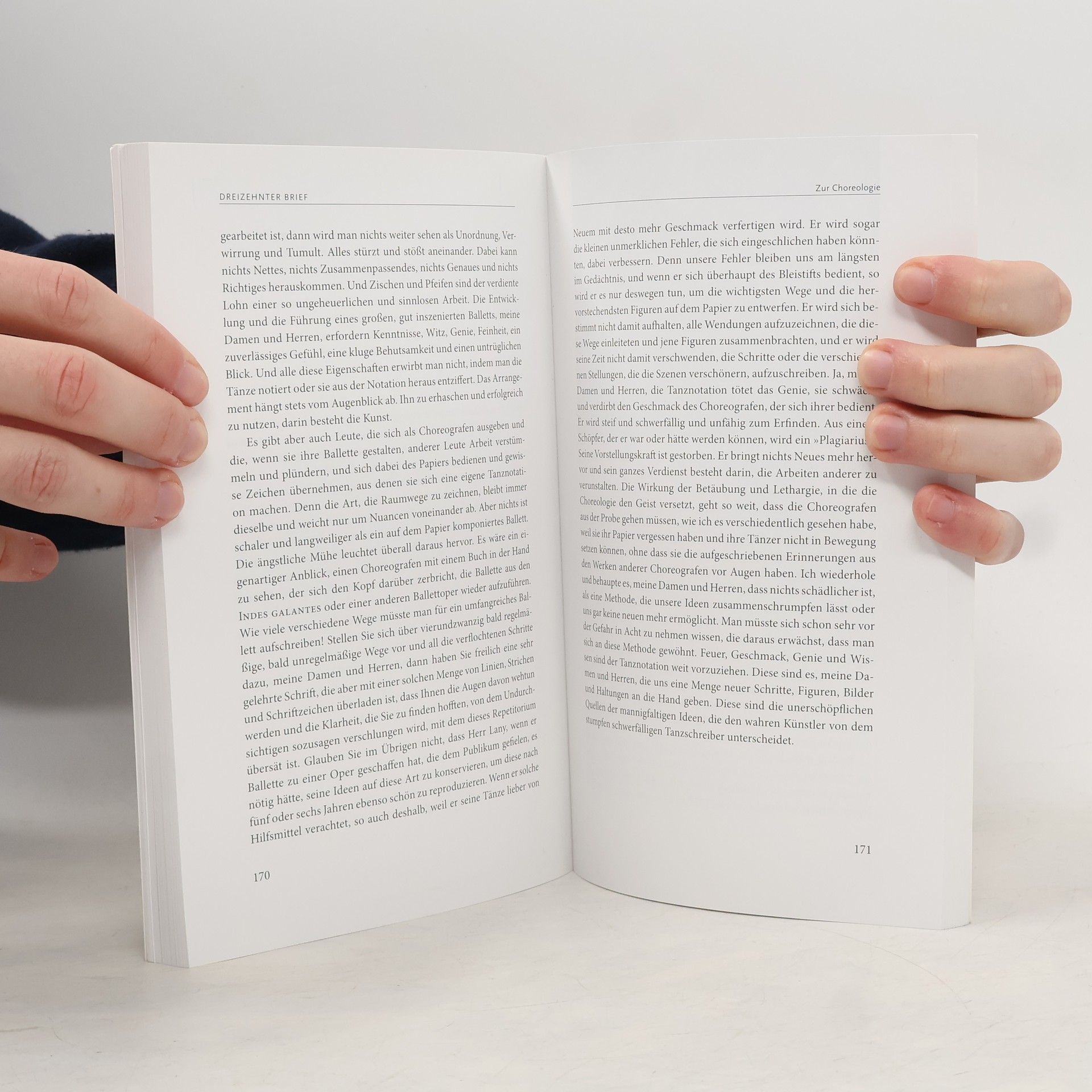 Die 1760 von dem französischen Choreografen und Tänzer Jean Georges Noverre publizierten „Briefe über die Tanzkunst“, die von Gotthold Ephraim Lessing für so sensationell erachtet wurden, dass er sich an ihre Übersetzung machte, sind auch 250 Jahre nach ihrem Erscheinen noch höchst aktuell. Indem der Autor die Situation des Bühnentanzes seiner Zeit mit beeindruckender Offenheit kritisierte und so zu einer umfassenden Reform ansetzte, lieferte er das Fundament für die Entstehung unseres heutigen Handlungsballetts. Ein Spiegel künstlerischer Zeitgeschichte: Der Text stellt vielfältigste Bezüge zu allen Bereichen der Kunst her und ist so eine wahre Fundgrube für Praktiker, Theoretiker und Liebhaber.