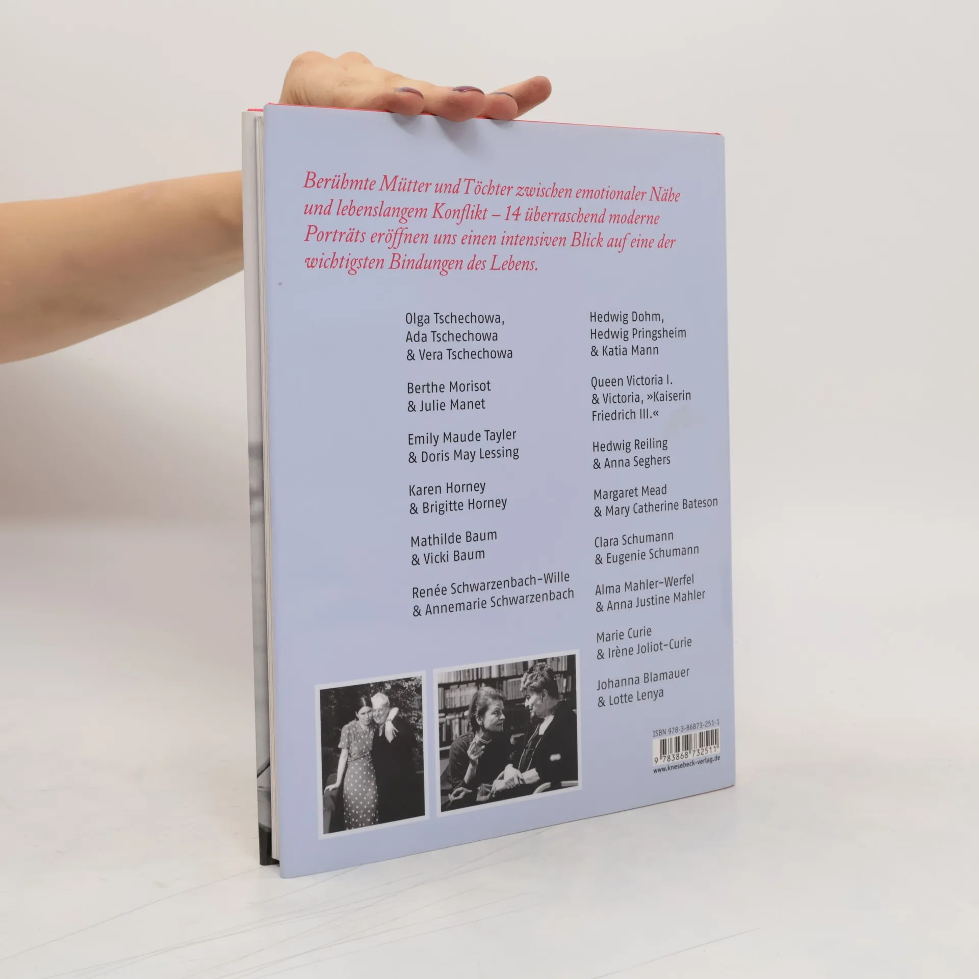 Nicht alle Töchter fühlen sich bedroht, aber fast alle Mutter-Tochter-Beziehungen beinhalten großes Spannungspotenzial. Die Lebensläufe berühmter Frauen wie Marie Curie, Berthe Morisot oder Doris Lessing sind geprägt von den vielschichtigen Beziehungen zu ihren Töchtern oder Müttern, von Ehrgeiz, Angst und Missverständnissen, aber auch von Mutterliebe, Vertrauen und Beistand. Es sind schillernde Lebensläufe, die zeigen, wie die Mütter zu den verschiedenen Lebenskonzepten standen und wie die Töchter damit lebten. Lebensläufe, die Einblick geben in Scheitern und Erfolg von Mutter-Tochter-Beziehungen zu allen Zeiten.