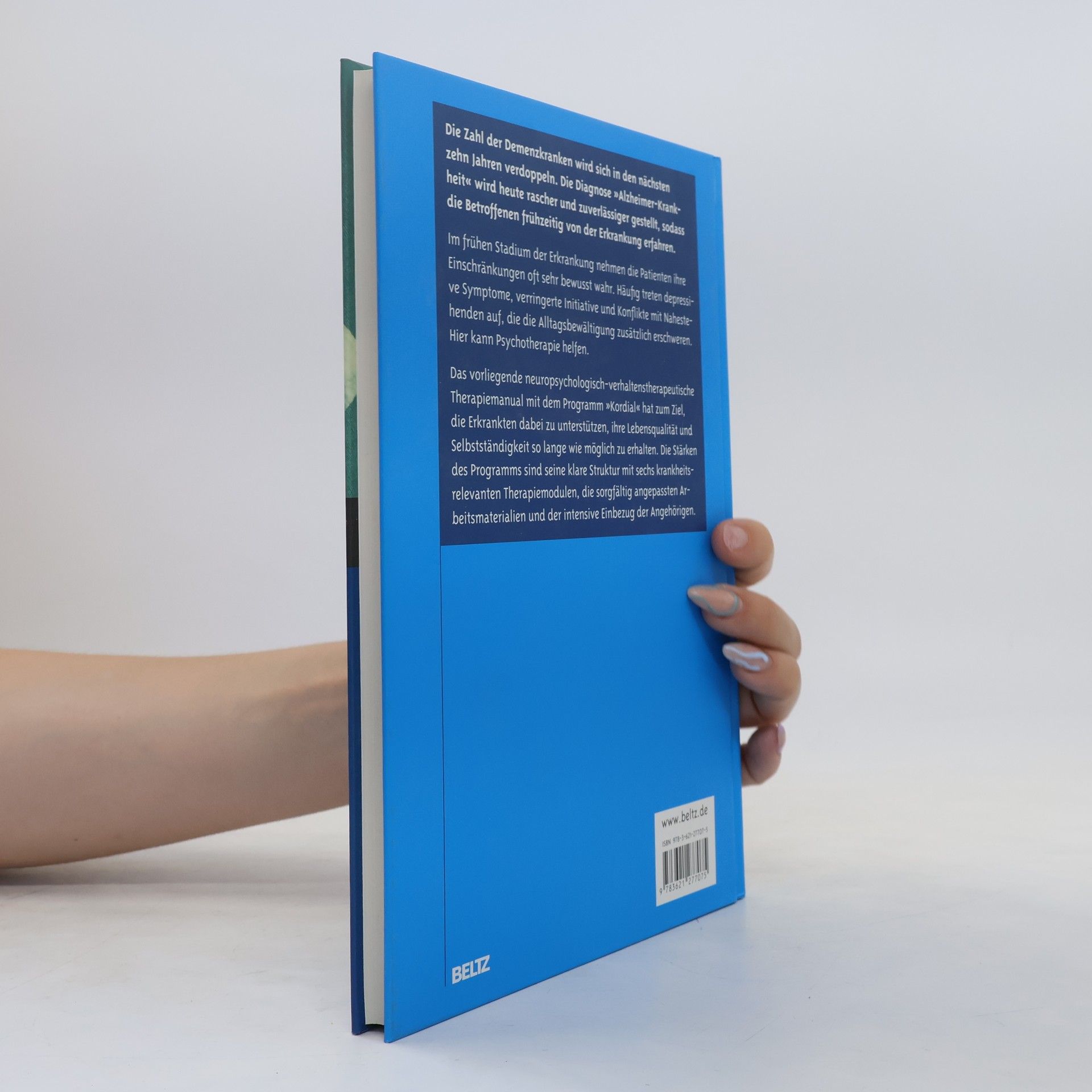 Die Zahl der Demenzkranken wird sich in den nächsten zehn Jahren verdoppeln. Dabei wird die Diagnose »Alzheimer-Krankheit« mittlerweile zuverlässiger und früher gestellt, sodass die Betroffenen frühzeitig von der Erkrankung erfahren. Zwar halten Medikamente die beängstigenden Symptome der Demenz einige Jahre auf, aber gerade in diesem Zeitraum ist die Lebensqualität häufig durch Depressionen eingeschränkt. Psychotherapeutische und nicht nur pharmakologische Therapie ist daher notwendig. Das vorliegende Therapiemanual mit sechs Modulen hat zum Ziel, die Alltagsfunktionen länger aufrechtzuerhalten, die Lebensqualität zu steigern und Depressivität zu mindern. Aus dem Inhalt • Erscheinungsbild und Epidemiologie • Medizinische Diagnostik und Behandlung • Psychische Störungen • Die Erkrankung im sozialen Kontext • Das Kordial-Trainingsprogramm • Module: Einführung; Der Hauskalender und andere Gedächtnishilfen; Gedächtnisprobleme im Alltag; Regelmäßige Aktivitäten; Kraftquellen in der Lebensgeschichte; Abschluss • Anhang mit Materialien: Arbeitsmappe, Angehörigenbriefe etc.