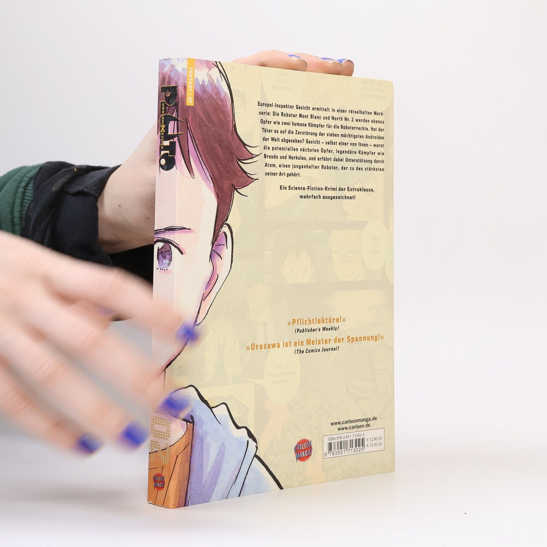 Europol-Inspektor Gesicht ermittelt in einer rätselhaften Mordserie: Die Roboter Mont Blanc und North Nr. 2 werden ebenso Opfer wie zwei humane Kämpfer für die Roboterrechte. Hat der Täter es auf die Zerstörung der sieben mächtigsten Androiden der Welt abgesehen? Gesicht − selbst einer von ihnen − warnt die potentiellen nächsten Opfer, legendäre Kämpfer wie Brando und Herkules und erfährt dabei Unterstützung durch Atom, einen jungenhafter Roboter, der zu den stärksten seiner Art gehört. Ein Science-Fiction-Krimi der Extraklasse, mehrfach ausgezeichnet!