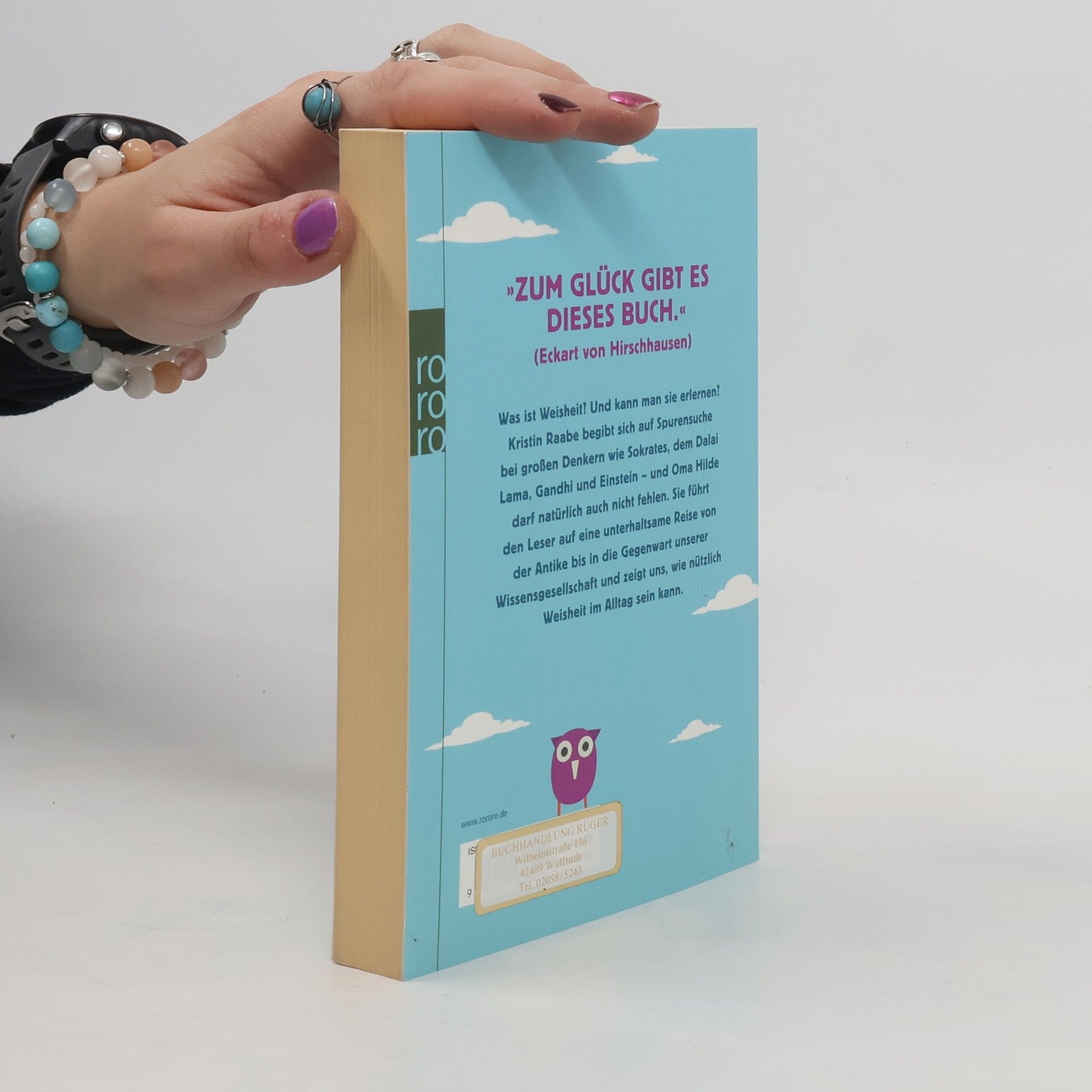 »Zum Glück gibt es dieses Buch.« (Eckart von Hirschhausen)Was ist Weisheit? Und kann man sie erlernen? Kristin Raabe begibt sich auf Spurensuche bei großen Denkern wie Sokrates, dem Dalai Lama, Gandhi und Einstein – und Oma Hilde darf natürlich auch nicht fehlen. Sie führt den Leser auf eine unterhaltsame Reise von der Antike bis in die Gegenwart unserer Wissensgesellschaft und zeigt uns, wie nützlich Weisheit im Alltag sein kann.
