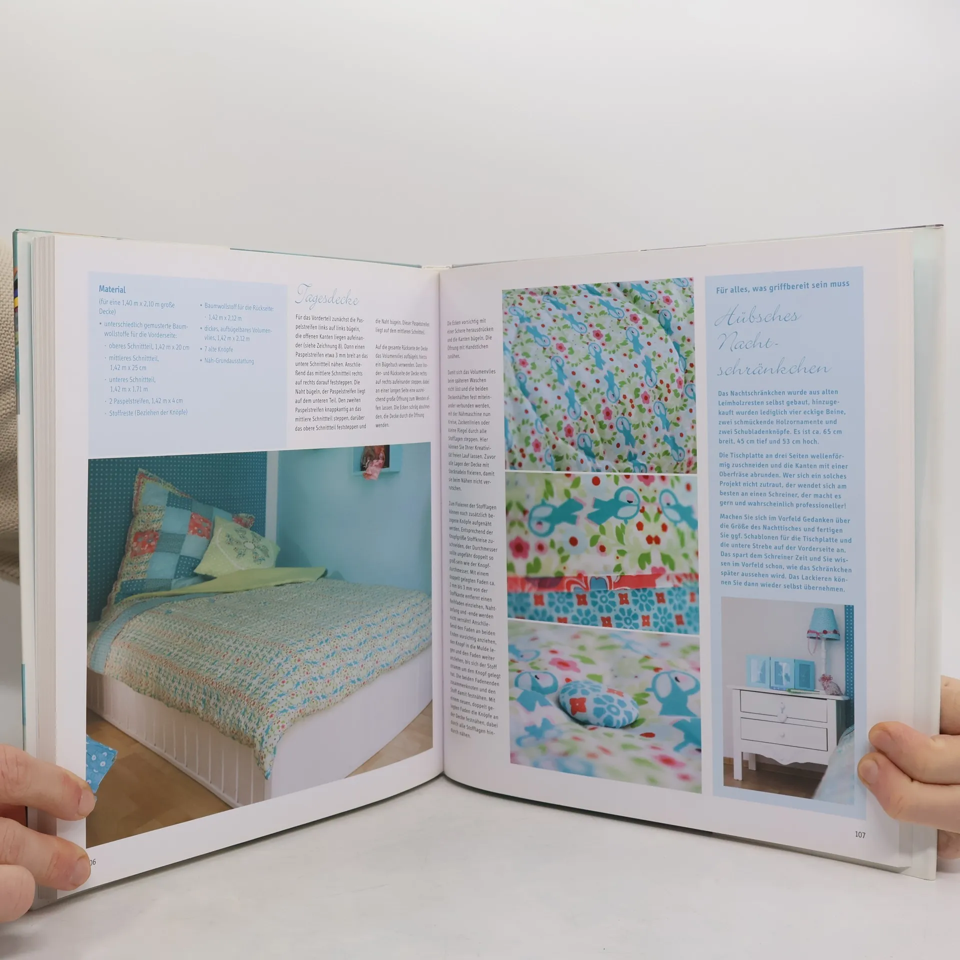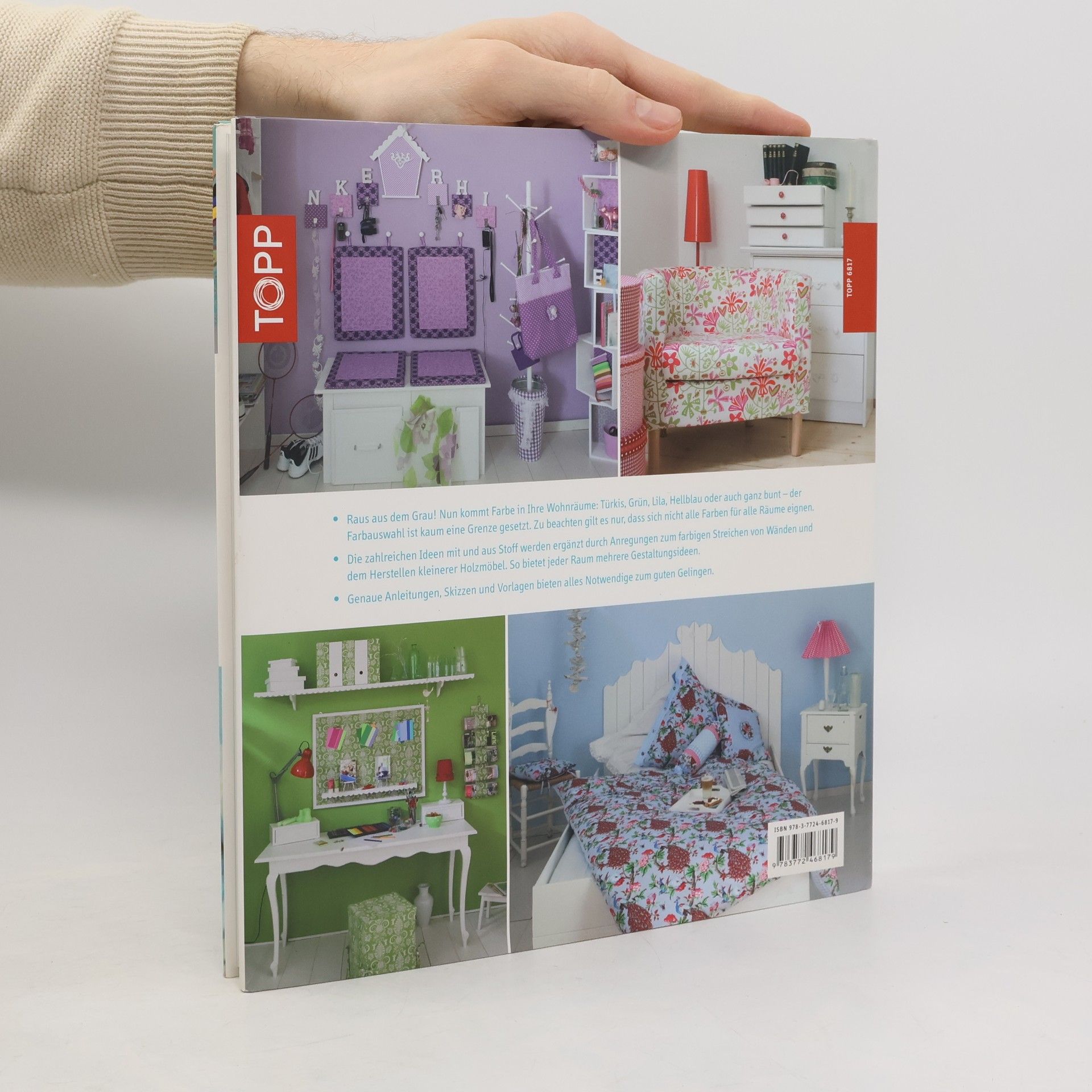 Raus aus dem Grau! Nun kommt Farbe in ihre Wohnräume: Türkis, Grün, Violett, Braun, Rot, der Farbauswahl ist kaum eine Grenze gesetzt. Zu beachten gilt es nur, dass sich nicht alle Farben für alle Räume eignen. Welche Wirkungen Farben beim Betrachter hervorrufen, zeigt ein Kapitel im Buch, z. B. klassische Braun- und Cr? metöne eignen sich für ein gemütliches Wohnzimmer, ein Kinderzimmer wäre eher fad und begeistert sicher in Türkis. Die zahlreichen Ideen mit Stoff werden ergänzt durch Anregungen zum farbigen Streichen von Wänden und dem Herstellen kleinerer Holzmöbel oder Rahmen. So bietet jeder Raum mehrere Gestaltungsideen. Genaue Anleitungen, Skizzen und Vorlagen bieten alles Notwendige zum Gelingen. 160 Seiten, 24 x 26,5 cm, Hardcover, mit Schutzumschlag