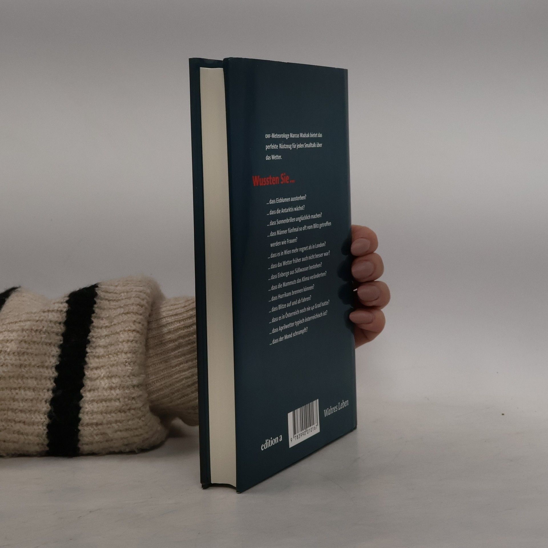 Ö3-Wecker- und ZiB-Wettermann Marcus Wadsak fasst in seinem ersten Buch 150 verblüffende Tatsachen über Klimalügen, Bauernregeln oder Wettermythen zusammen. Wussten Sie zum Beispiel, dass es in Wien häufiger regnet als in London? Warum die Antarktis derzeit wächst? Warum Herbst und Winter scheinbar ewig dauern, obwohl Frühling und Sommer zusammengerechnet mehr Zeit im Jahr beanspruchen? Wie viel Luft wiegt? Warum es gar nicht stimmt, dass man bei Gewittern Eichen weichen und Buchen suchen soll? Und wer eigentlich vom in Wirklichkeit längst 'gestopften' Ozonloch profitiert? Mit seinem amüsant präsentierten Expertenwissen erbringt der ORF-Meteorologe Wadsak den Beweis, dass das Gesprächsthema Nummer eins höchst interessant sein kann.