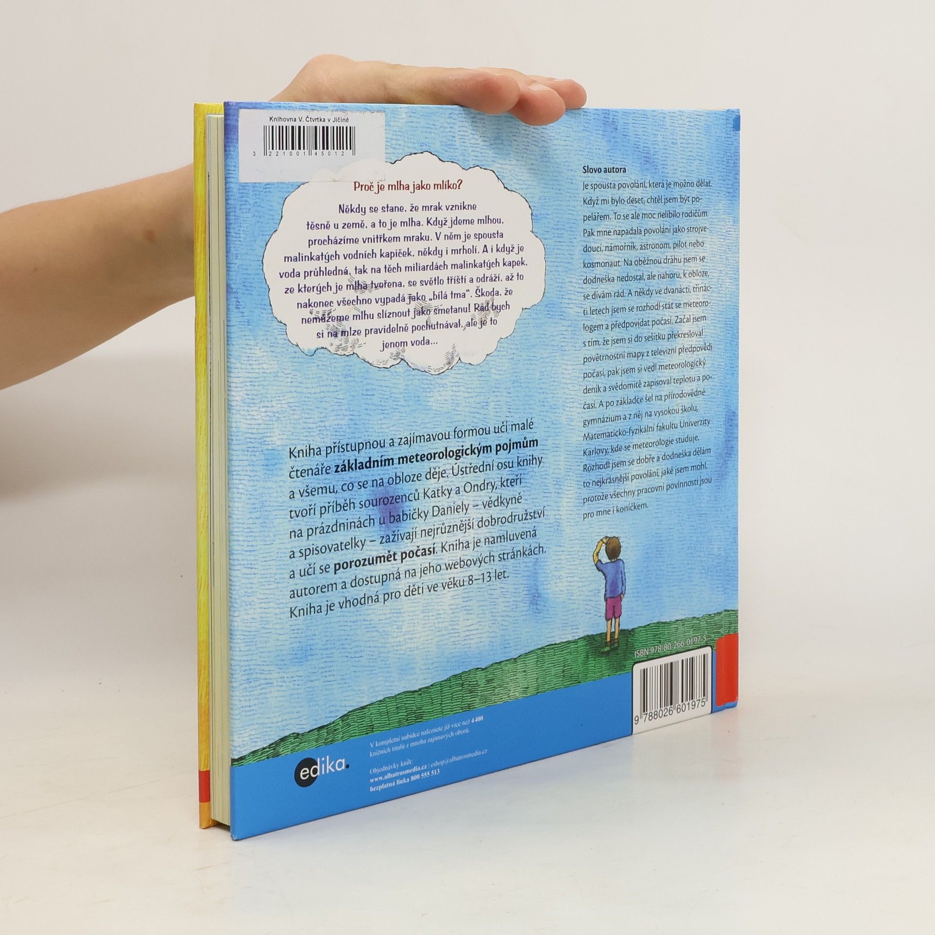Kniha přístupnou a zajímavou formou učí malé čtenáře základním meteorologickým pojmům a všemu, co se na obloze děje. Ústřední osu knihy tvoří příběh sourozenců Katky a Ondry, kteří na prázdninách u babičky Daniely - vědkyně a spisovatelky - zažívají nejrůznější dobrodružství a učí se porozumět počasí. Je určena pro děti ve věku 8 - 13 let.