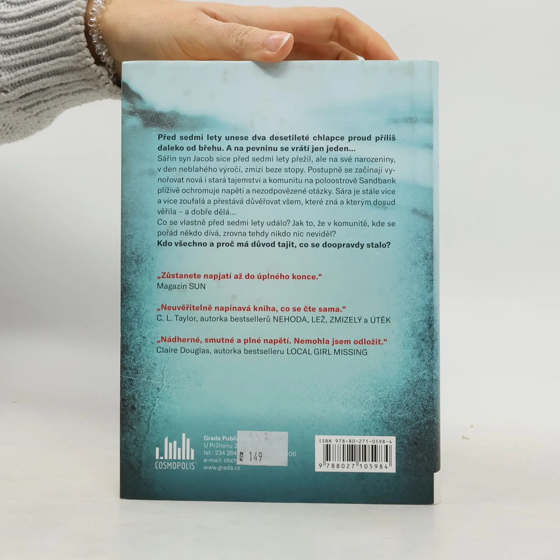 Před sedmi lety unese dva desetileté chlapce proud příliš daleko od břehu. A na pevninu se vrátí jen jeden… Sářin syn Jacob sice před sedmi lety přežil, ale na své narozeniny, v den neblahého výročí, zmizí beze stopy. Postupně se začínají vynořovat nová i stará tajemství a komunitu na poloostrově Sandbank plíživě ochromuje napětí a nezodpovězené otázky. Sára je stále více a více zoufalá a přestává věřit všem, které zná a kterým dosud důvěřovala – a dobře dělá… Co se vlastně před sedmi lety událo? Jak to, že v komunitě, kde se pořád někdo dívá, zrovna tehdy nikdo nic neviděl? Kdo všechno a proč má důvod tajit, co se doopravdy stalo?