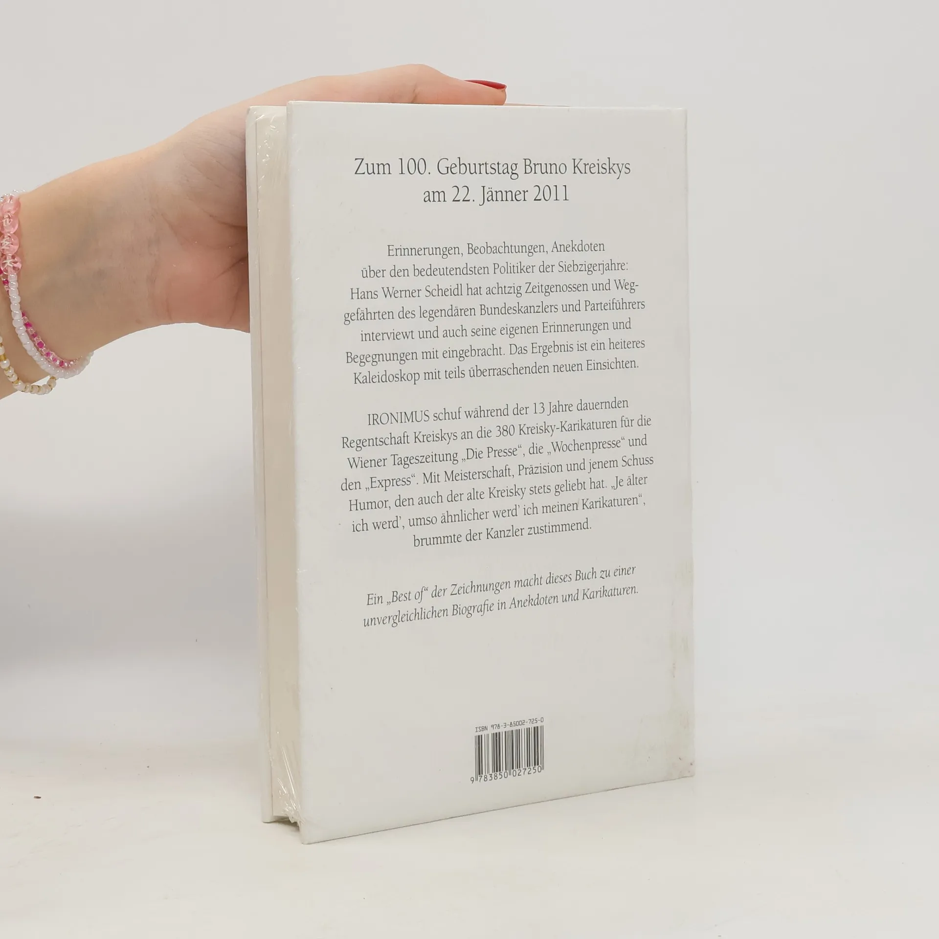 Anekdoten und Karikaturen zum 100. Geburtstag Was Sie immer schon wissen wollten: Wie war er wirklich, wie war der wahre Kreisky? Um den legendären Kanzler der Siebzigerjahre ranken sich Legenden und Geschichten, Anekdoten und Erinnerungen. Ganze Bibliotheken füllen sich mit Kreisky-Literatur. Aber die Weggefährten werden immer weniger. Wir haben neunzig Zeitgenossen aus der Politik und den Medien befragt und die besten G’schichten zusammengetragen. Aus dem Inhalt Bürgersohn und Revolutionärer Sozialist Jurist und heimwehkranker Journalist im schwedischen Exil Als Staatssekretär mit Raab, Figl und Schärf in Moskau 1955 Außenminister und Südtirol-Unterhändler Oppositionsführer und Überraschungssieger Alleinherrscher und Ersatzmonarch Dialysepatient und verbitterter Polit-Pensionist Ab 1955 begleitete „Ironimus“ mit seiner Zeichenfeder den Staatsmann. "Je älter ich werd', desto mehr ähnle ich Ihren Karikaturen„, schmunzelte Kreisky. Und der Zeichner gab das Kompliment zurück: “Gäbe es sie nicht schon – für Sie müsste die Karikatur erfunden werden."