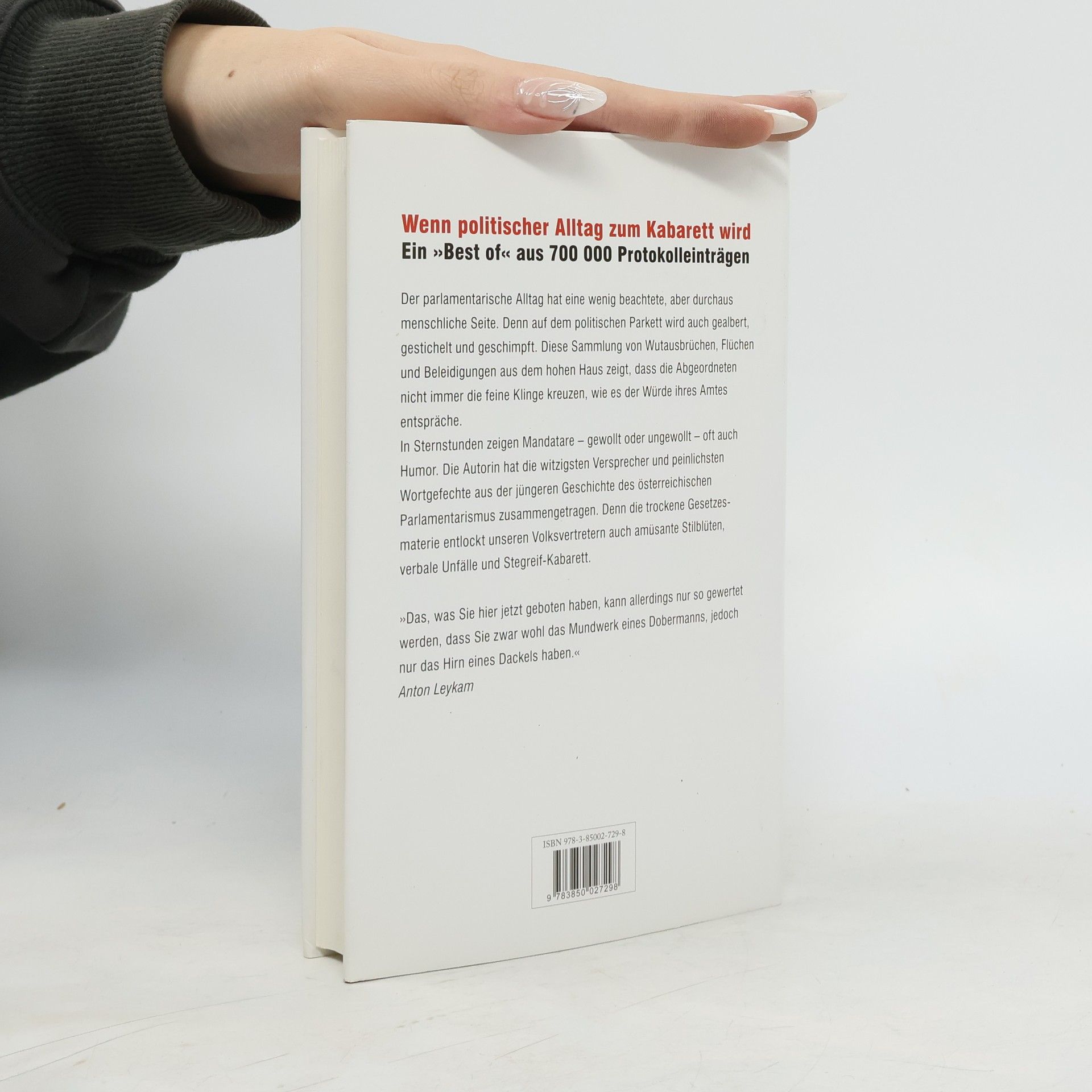 Der parlamentarische Alltag hat eine wenig beachtete, aber durchaus menschliche Seite. Denn auf dem politischen Parkett wird gealbert, gestichelt und geschimpft. Diese Sammlung von Wutausbrüchen, Flüchen und Beleidigungen aus dem Hohen Haus beweist, dass die Abgeordneten nicht immer die feine Klinge kreuzen, wie es der Würde ihres Amtes entspräche. In Sternstunden zeigen Mandatare – gewollt oder ungewollt – oft auch Humor. Die Autorin hat die witzigsten Versprecher und peinlichsten Wortgefechte aus der jüngeren Geschichte des Parlamentarismus zusammengetragen. Denn die trockene Gesetzesmaterie hält die Volksvertreter nicht vor verbalen Unfällen und Stegreif-Kabarett zurück. \" Das, was Sie hier jetzt geboten haben, kann allerdings nur so gewertet werden, dass Sie zwar wohl das Mundwerk eines Dobermanns, jedoch nur das Hirn eines Dackels haben. \" - Anton Leikam \" Geh' gib a Ruh, du Unsympathler. \" - Erhard Koppler \" Dreckschleuder! \" - Andreas Khol