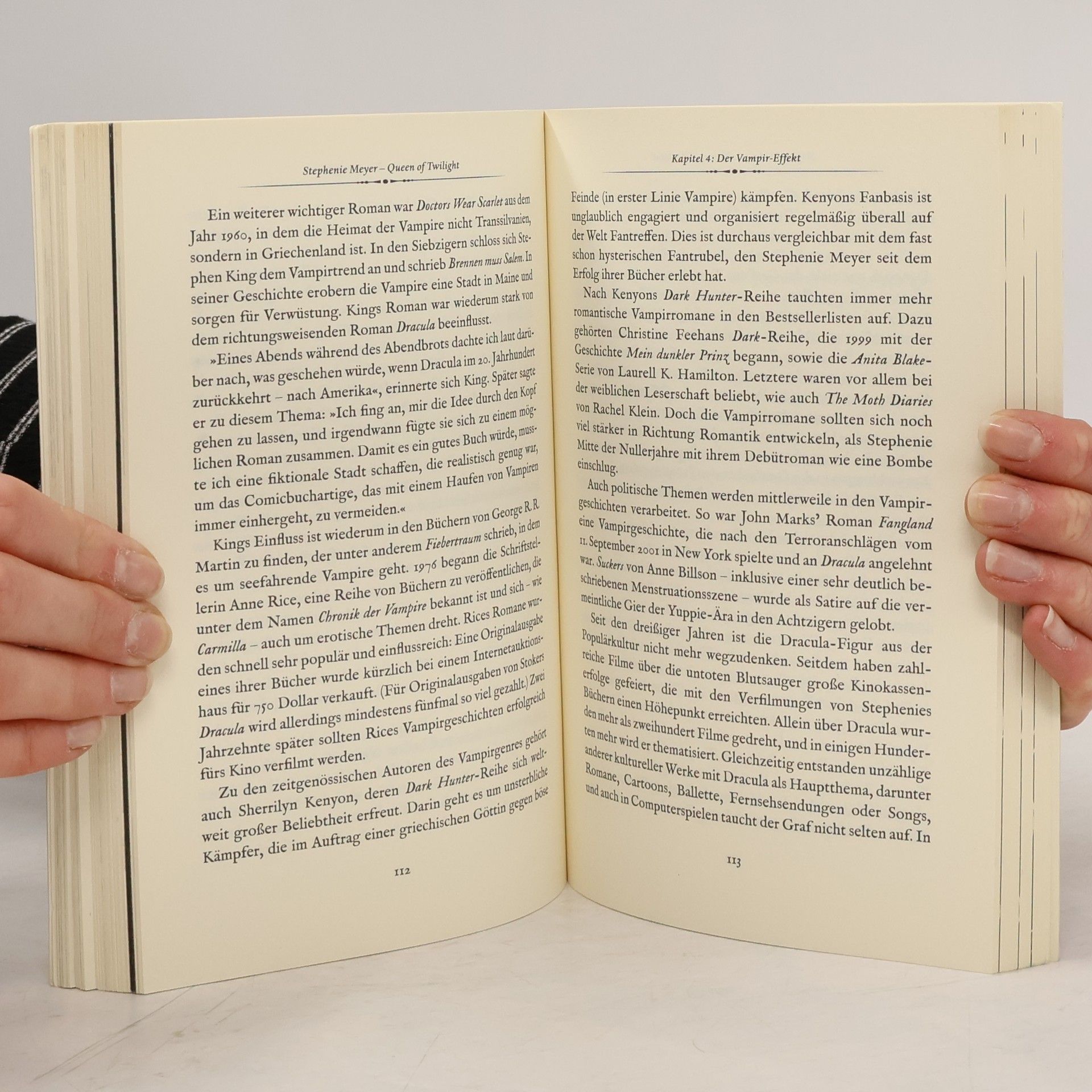 Diese Biografie zeichnet Stephenie Meyers Weg von der mormonischen Hausfrau aus Phoenix zur beliebtesten Vampirautorin seit Anne Rice und zum Superstar des Jugendbuchs nach. Chronologisch erzählt der Autor Chas Newkey-Burden von den Stationen ihres Lebens, das sie 1973 als zweites Kind einer achtköpfigen Familie begann. Er berichtet über das Studium an einer mormonischen Uni bis hin zur frühen Heirat mit Christiaan »Pancho« Meyer, ihrer großen Liebe, den sie seit ihrer Kindheit kannte. Im Zentrum des Buches steht die Entstehung und Entwicklung der Twilight-Saga, die Stephenie Meyer berühmt und zu einer der einflussreichsten Schriftstellerinnen der Welt gemacht hat. Die Wirkung ihres Glaubens auf ihr Schreiben, die Hysterie der Fans, die Meinung der Kritiker und ihr Leben als Medienstar werden spannend beschrieben. Auch Meyers andere Werke – darunter der Science-Fiction-Roman 'Seelen', das unvollendete Buch 'Midnight Sun' und ihr neuester Roman 'Bis(s) zum ersten Sonnenstrahl' werden vorgestellt. Damit ist die Biografie der »Queen of Twilight« Pflichtlektüre für jeden Bis(s)-Fan, der die Romane verschlungen hat und nun die Geschichte hinter der Vampir-Saga erfahren möchte.