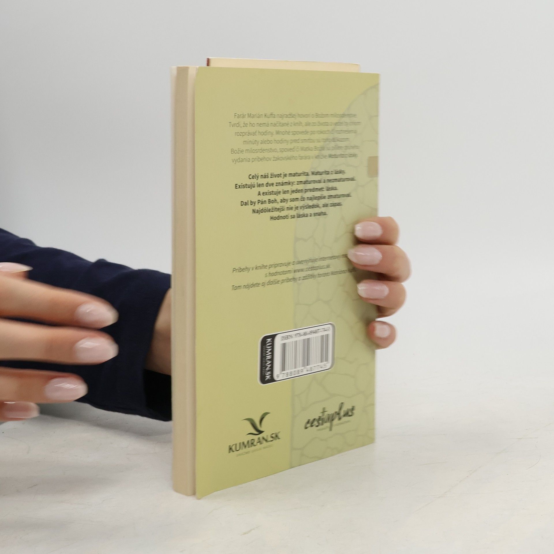 alebo Za nesmrteľnú dušu znesiem všetky kopance Farár Marián Kuffa najradšej hovorí o Božom milosrdenstve. Tvrdí, že ho nemá načítané z kníh, ale zo života a vedel by o ňom rozprávať hodiny. Mnohé spovede po rokoch či rozhrešenia minúty alebo hodiny pred smrťou sú toho dôkazom. Božie milosrdenstvo, spoveď či Matka Božia sú piliere druhého vydania príbehov žakovského farára v knižke Maturita z lásky. Celý náš život je maturita. Maturita z lásky. Existujú len dve známky: zmaturoval a nezmaturoval. A existuje len jeden predmet: láska. Dal by Pán Boh, aby som čo najlepšie zmaturoval. Najdôležitejší nie je výsledok, ale zápas. Hodnotí sa láska a snaha. Túto knihu ilustrovali väzni z leopoldovskej väznice, ľudia bez domova z Nocľahárne sv. Vincenta de Paul, deti z detského domova v Trenčíne-Zlatovciach a nevyliečiteľná pacientka z hospicu v Trenčíne.